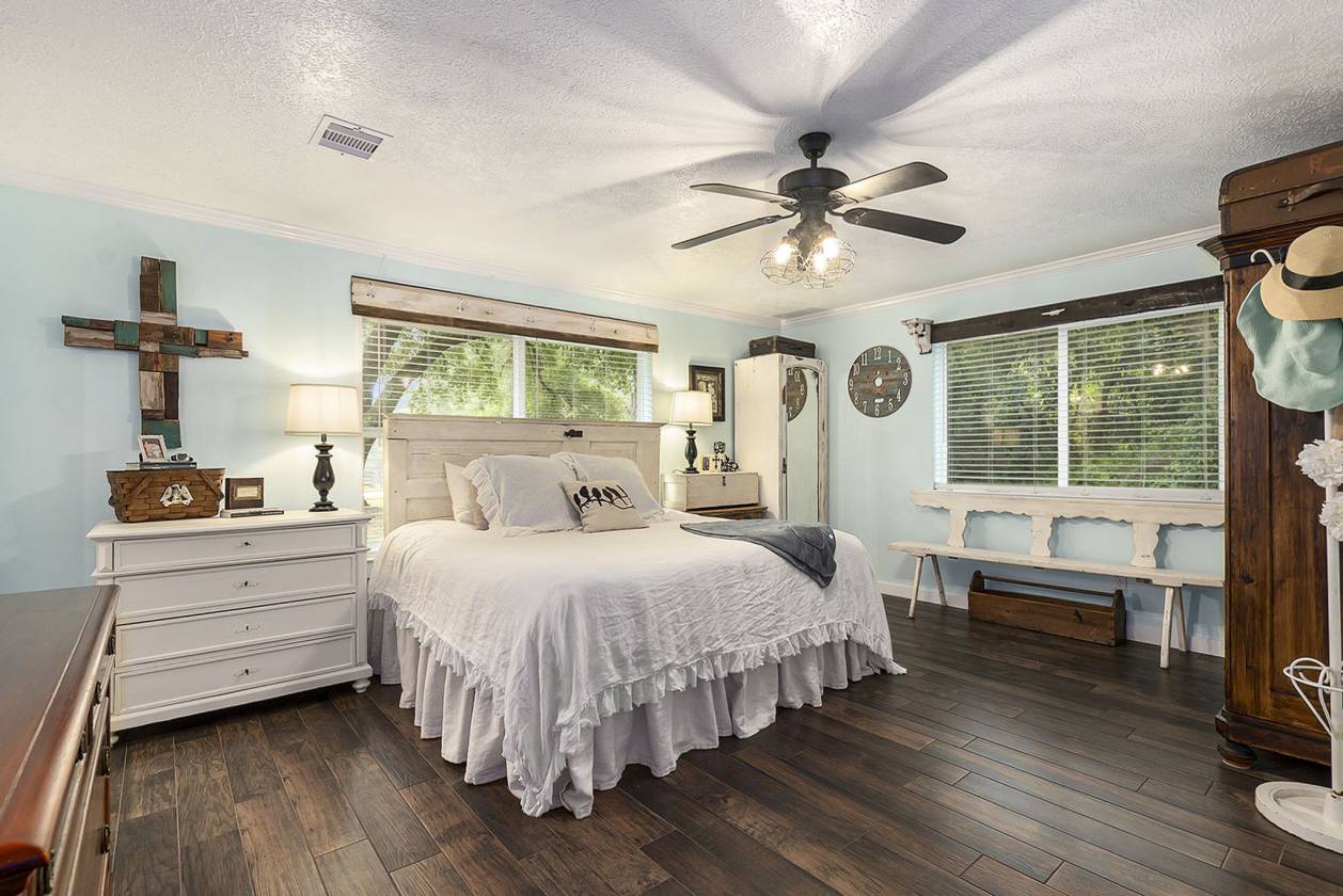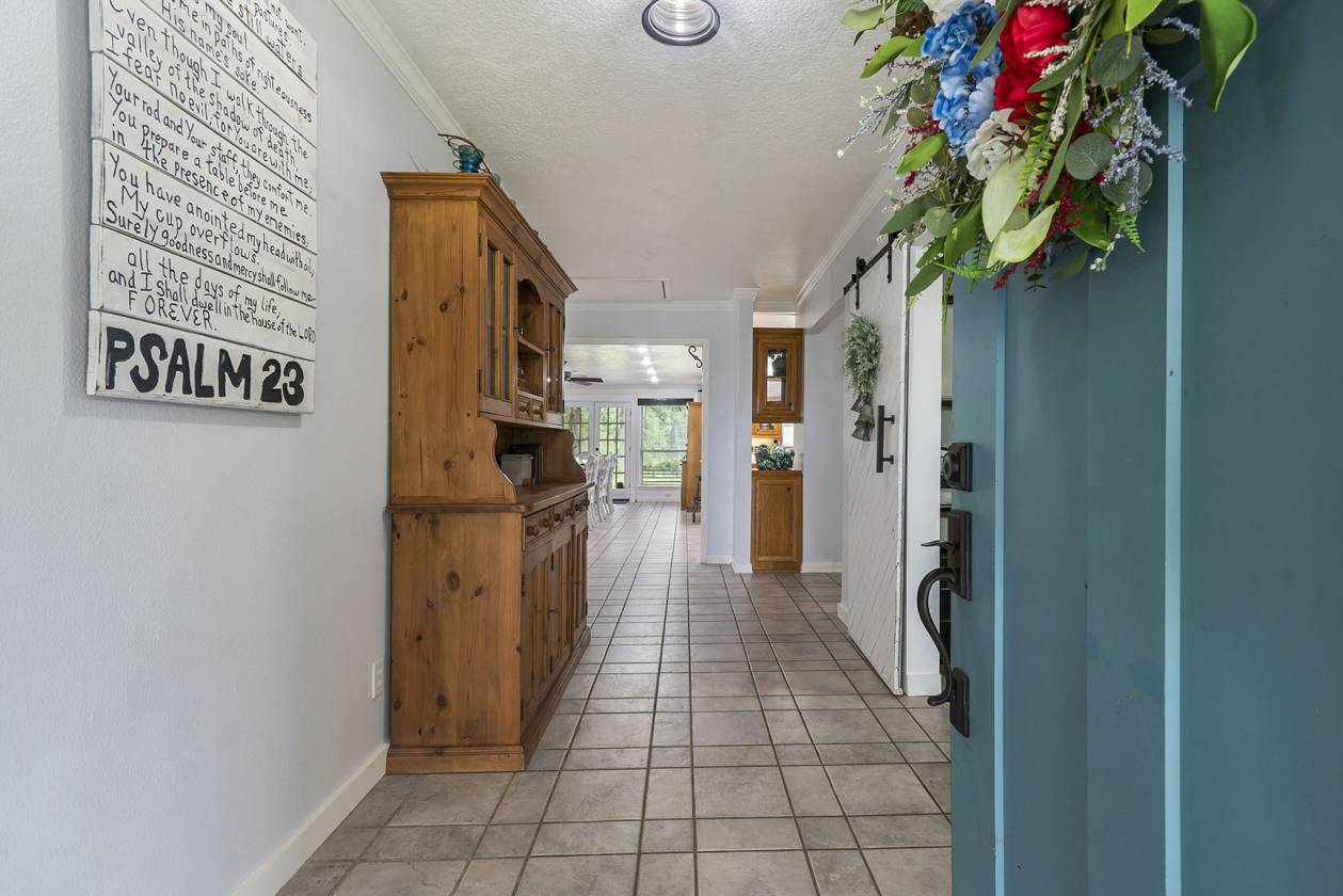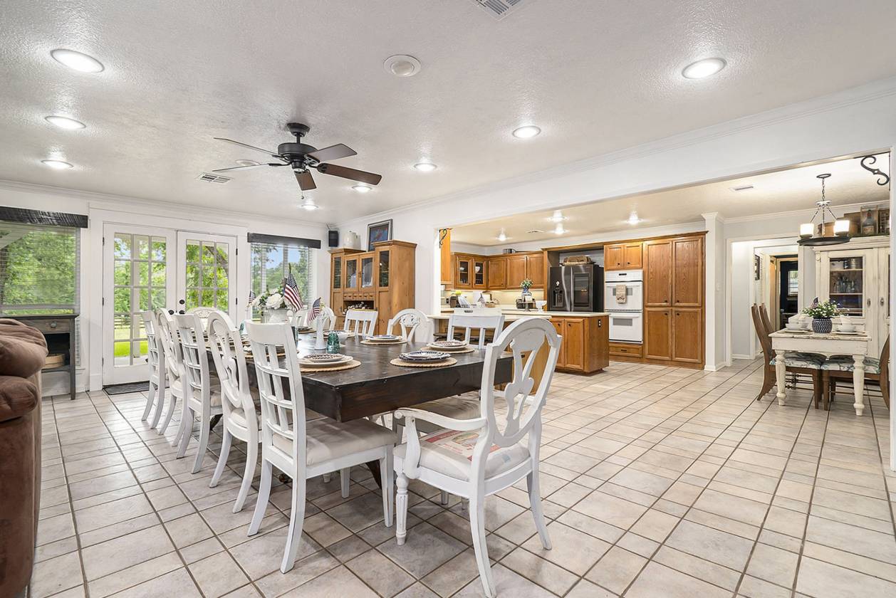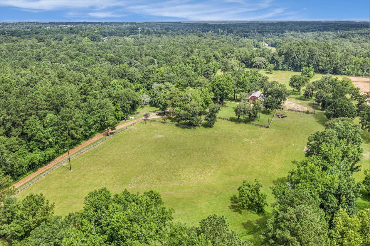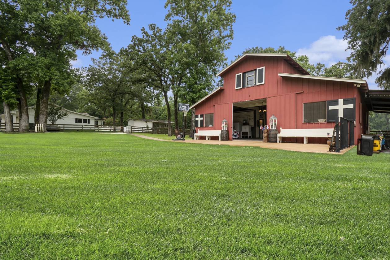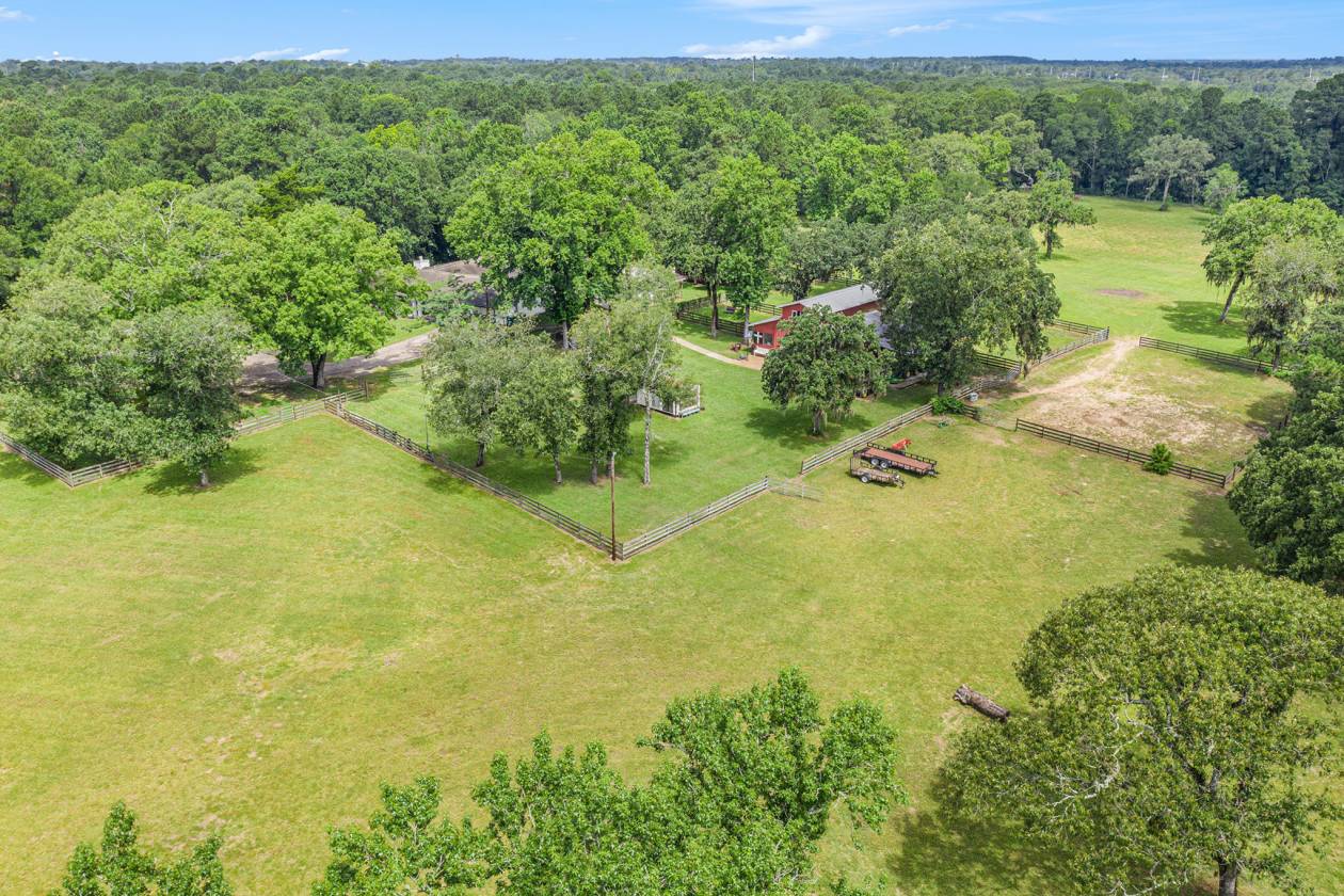 Escape to your own private equestrian paradise just minutes from I-45! This stunning, impeccably maintained 13.348-acre horse property — a rare find that truly must be seen to be believed. Step inside this spacious home and be greeted by a massive living room featuring a soaring stone fireplace, built-in surround sound, and an open-concept flow that’s perfect for entertaining. The chef’s island kitchen boasts an integrated refrigerator, double convection ovens, solid Corian countertops, and ample storage. Retreat to the recently updated primary bath with modern finishes, or work from home in the stylish study with custom built-in bookshelf. Additional upgrades include custom cabinetry in the spacious indoor laundry room and new blinds throughout the home. Equestrian amenities with 4-stall barn with tack room, ½ bath, two lofts, workbench with sink, and built-in speakers. Individual automatic waterers in every stall. Additional concrete slab with electrical hookup in the yard — perfect for a shop or trailer. Charming stone circular patio with electrical in the backyard for evening gatherings under the stars! Fully fenced, peacefully secluded, yet conveniently close to town and major highways. If you’ve been dreaming of a turn-key horse property with a beautiful home and every detail already in place, this is it. Schedule your private tour today!