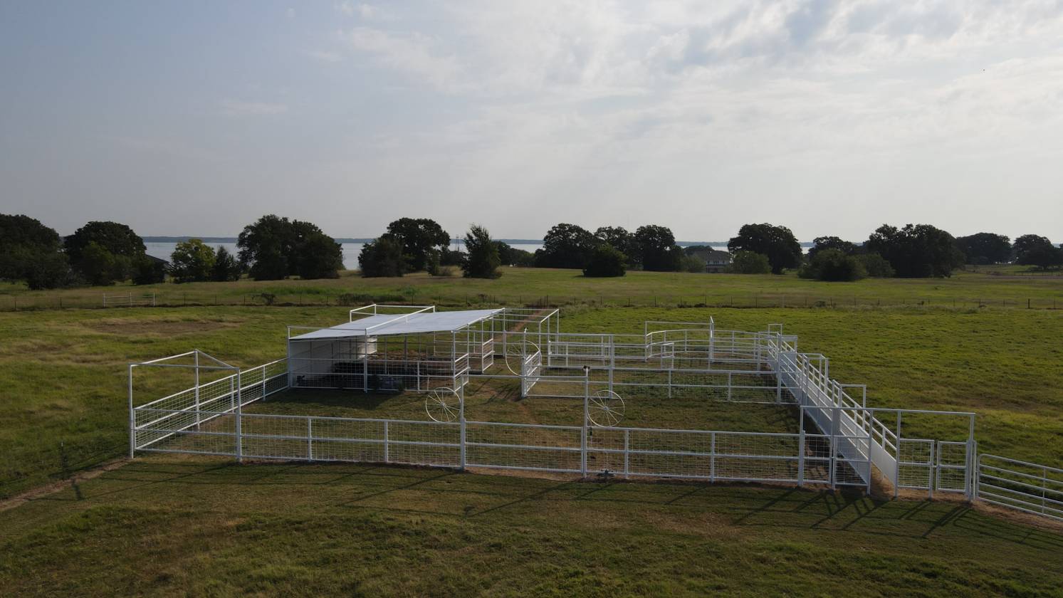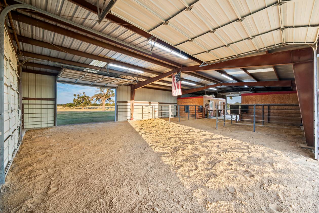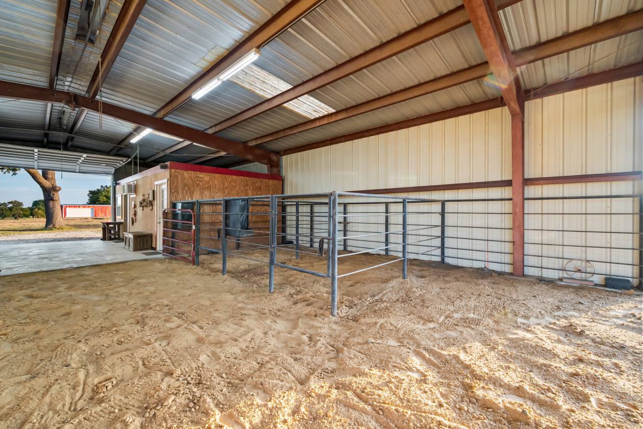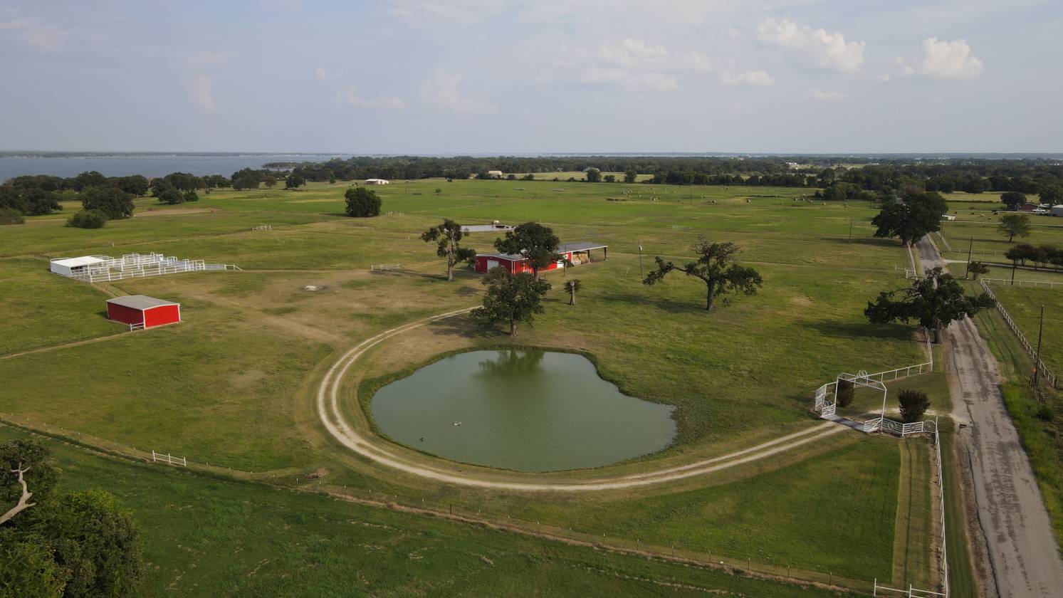 22.5 acres with breathtaking views of Richland Chambers Lake. This versatile property blends ranch living with modern comfort and is designed for those who love the outdoors, livestock, and the lake lifestyle. The centerpiece is a spacious 5,000 sq ft barn that includes comfortable living quarters,thoughtfully designed with both functionality and charm. Inside, you’ll find a welcoming living room with custom built-ins, a full kitchen, a private bedroom, and a full bath—perfect as a retreat, guest quarters, or caretaker’s residence. The barn portion offers 4 horse stalls, a tack room, durable PEX water lines, electricity, septic, and LED lighting throughout. Internet availability ensures you can stay connected while enjoying country living. A second 800 sq ft barn or workshop provides additional flexibility with concrete flooring, water, electricity, and LED lighting—ideal for projects or storage. For equestrian or ranching needs, the property features a pipe corral with a loading chute, 5 individual pens, water, electricity, and LED lighting. Both barns and the corral have been recently painted, enhancing curb appeal and functionality. The land itself is fully fenced with 5 separate pastures, including a productive Coastal Bermuda hay field. Two ponds, stocked with catfish, provide both beauty and recreation. A pipe ornamental automated entrance sets the tone for this private estate. Whether you’re raising cattle, boarding horses, or simply seeking a serene family retreat, this property offers endless possibilities. With lake views from multiple points on the acreage and access to a private subdivision boat ramp, fishing, boating, and family fun are just minutes away. This rare combination of acreage, amenities, and lake proximity makes this property truly one-of-a-kind. It’s the perfect blend of ranch, recreation, and relaxation—all within a stone's throw from Richland Chambers Lake, the 3rd largest lake in Texas!