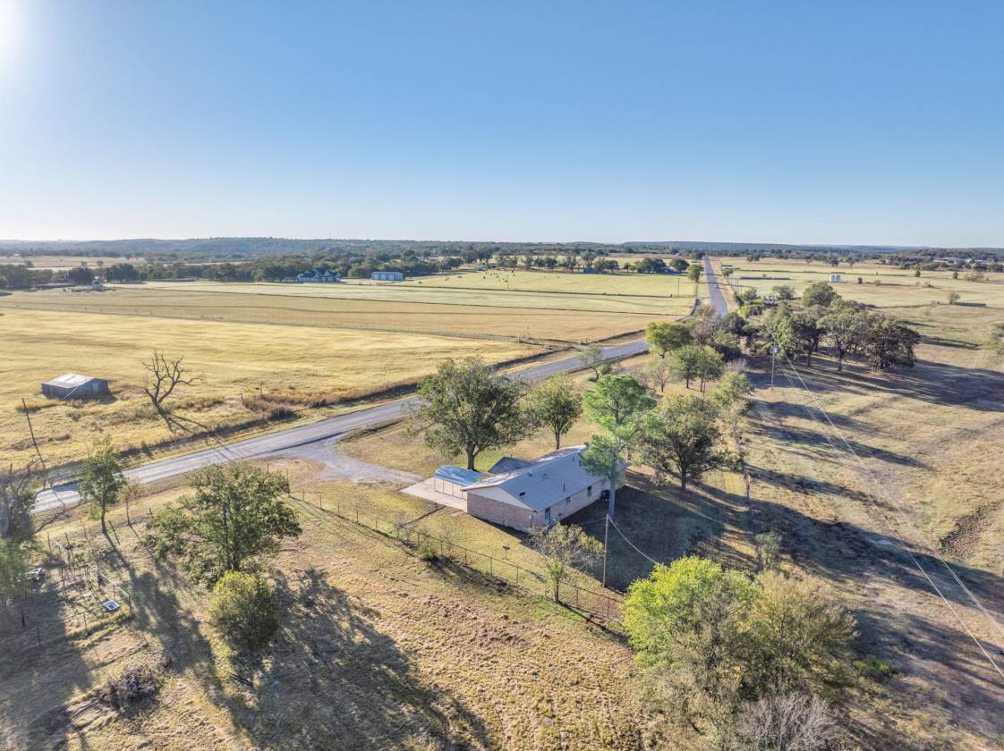 Have you been dreaming of a move to the country? Here's your chance to own a well-maintained three-bedroom, two-bath brick home nestled on more than eight acres of quality Texas soil with frontage on Palo Pinto Creek, flowing from the Brazos River. Built in 1969, this one-owner homestead is currently Ag-Exempt and offers multiple pecan trees, abundant wildlife, and fenced acreage ideal for horses, livestock, poultry, gardening, or simply enjoying wide-open space. The home is move-in ready yet also welcomes your personal aesthetic updates. Features include a dining area with custom built-in cabinets and bookcase, breakfast bar, kitchen with access to the utility room, large storage closet, garage, and back door, plus a completely remodeled guest bath. You'll also appreciate the oversized closets, ensuite primary bedroom and bath, and an HVAC system updated approximately three years ago. This property has been lovingly cared for and it shows! Schedule your private showing today—and let us know if you'd like the sellers' agents to provide an ATV ride down to the creek!