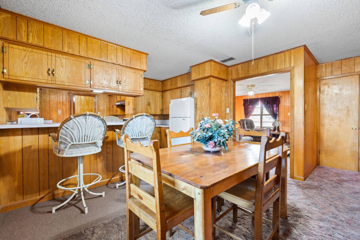 - Built-in cabinets in dining area