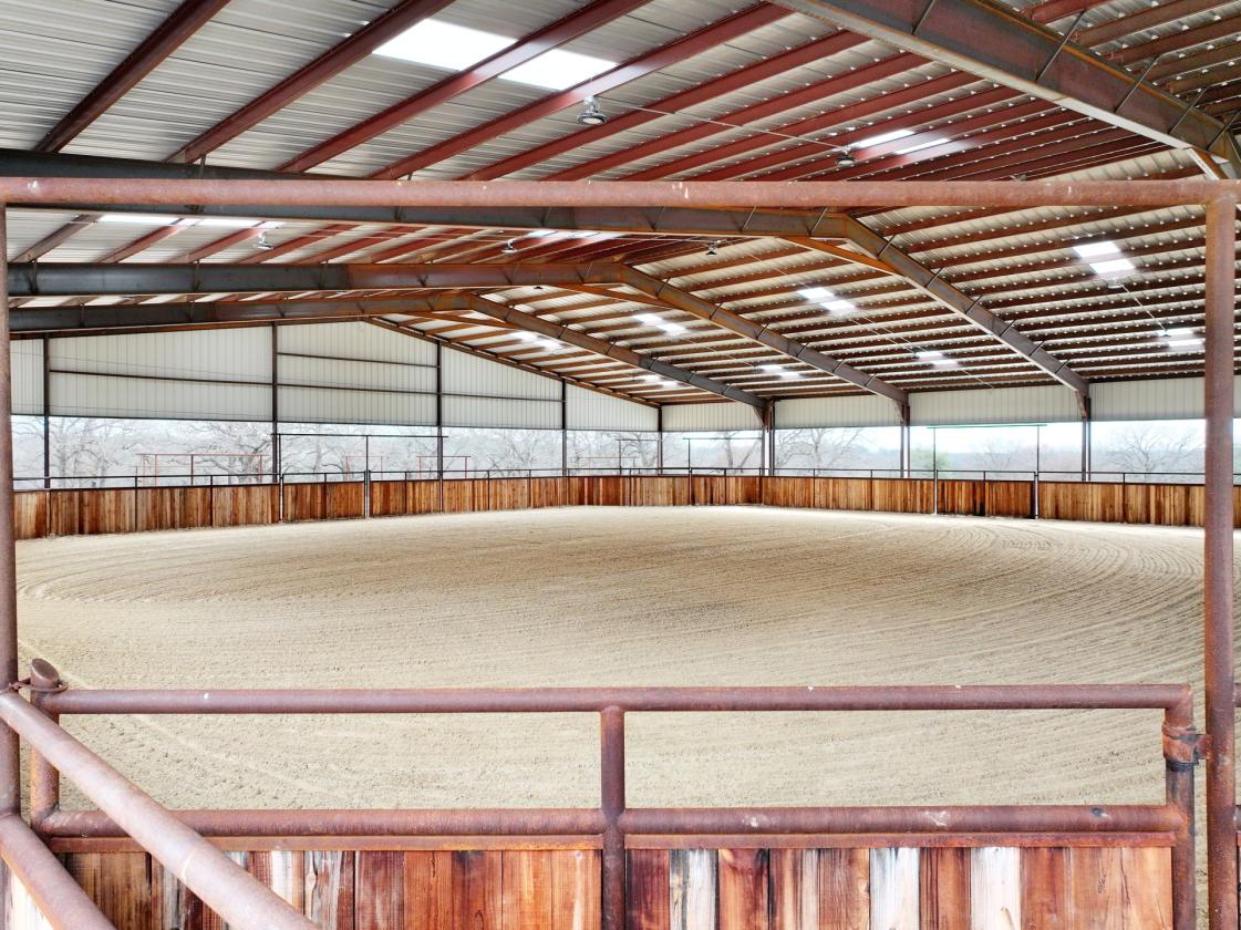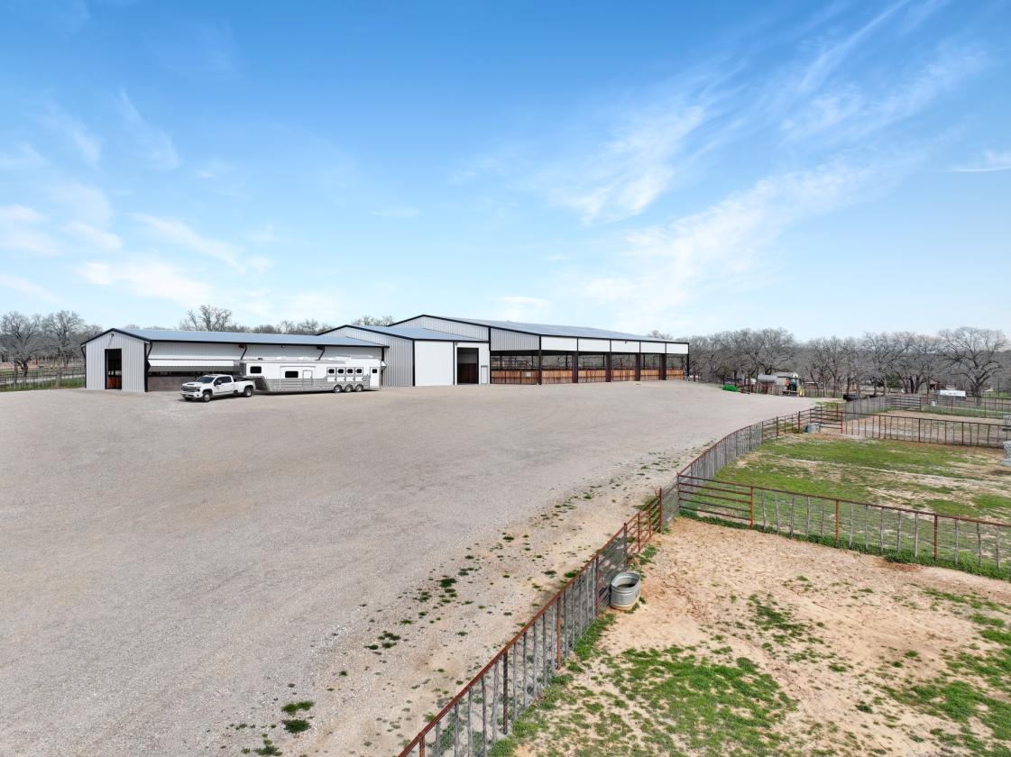 Nestled in the heart of Parker County, this elite equestrian estate is a horse enthusiasts dream. Featuring a 125x125 covered arena with room to expand and holding pens at each corner and alleyway. Attached show barn with twelve 14x14 stalls with large airplane hangar doors on the top half that open to allow sun, air through the barn for the horses. UFO LED lights, 42x84 alley tie area, wash rack, temp controlled custom tack room with rotating tack doors for added convenience, an oversized restroom, and no seam rolled rubber flooring throughout. Two 5,000-gallon storage tanks, two 5.5hp industrial vertical Goulds pressure pumps, with a 3HP in-ground well pump. Not one but two energy efficient ICF concrete custom homes both with 3 Bd, 2.5 Ba, and office. Water filtration system, tankless water heater, custom white oak cabinets and floating shelves, seamless quartz countertops, Chef's gas stove, high ceilings, wood beams, 10ft doors, white oak wood floors and high end carpet with extra pad, and EV chargers in garage. Your dream ranch awaits.