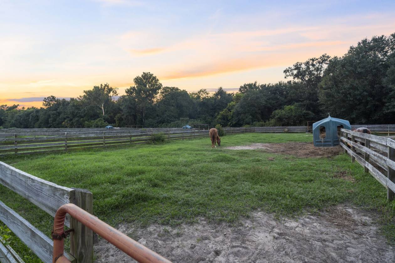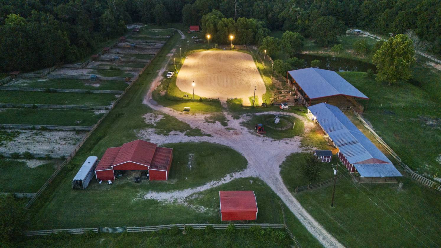 covered arena • uncovered arena • hay barn • fenced • second house • pond