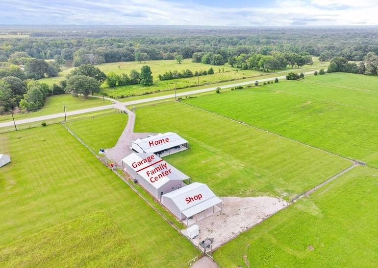 Owner open to all offers. BEAUTIFUL, super flexible property!!! Easily made multi-generational; build another house; raise cattle; add a horse barn and arena. Make it fit your needs. Welcome to the serene countryside of Alba, Texas! This fully fenced and cross fenced 16-acre estate is close to Emory, Quitman, & Mineola. The 3-2 open-concept Farmhouse style manufactured home, plus a Barndo with a kitchenette, 1 guestroom, a full bath, and 2 hobby rooms total 3,240 sq ft of living space, plus an oversized 3-car garage, and a shop! Built in 2022, this meticulously cared-for home has a split Primary en suite bathroom with a spa-like atmosphere, 2 guest rooms, and a 2nd full bath. Heated toilet seats in both bathrooms offer a touch of luxury. The spacious living room, featuring an enclosed gas fireplace, seamlessly integrates the living room, kitchen, and dining room, creating an ideal space for large family gatherings. The heart of this home is the huge kitchen, which boasts an expansive island perfect for meal preparation and casual dining. With ample counter space, metal cabinet inserts, modern appliances, and plenty of storage, this kitchen is a chef's delight. Open shelving adds space to beautifully display your favorite items. The exceptionally large pantry ensures you have everything you need at your fingertips and leads into the cheerfully bright laundry room. Outdoor living is a highlight of this property. An 8' X 62' concrete sidewalk with a front-door overhang leads to a 62' X 14' tiled covered patio, complete with overhead fans and a misting system, making it the perfect spot to relax and watch the sunset. All exterior doors are equipped with keypads for added convenience. The oversized three-car garage, with openers for each door includes a 16-person tornado shelter and a direct entrance to the Barndo-Family Center. There are two homestead acres, one has the buildings you see, the other is already metered. Possible family compound? Airbnb? Close to Lake Fork, AG Exempt with Coastal hay. Top of the line infrastructure - property is priced far below construction price. The on-site gas tank is leased. Make an offer today.