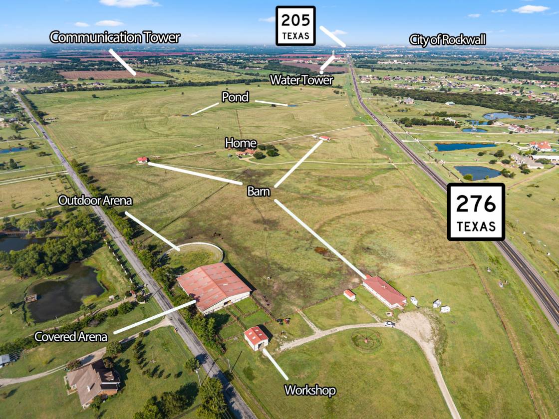 This exceptional 206.2945-acre property offers a rare opportunity for investors, developers, or ranchers in rapidly growing Rockwall County, Texas. Located within the ETJ of Rockwall County, the property is unrestricted by zoning, and outside the city limits of both Rockwall and Royse City. With significant frontage on Highway 276, Streetman Road, and Melody Lane, the tract is strategically positioned for a variety of uses including agricultural, residential, commercial, industrial, or multi-family development. LOCATION & ACCESS Address: Near Hwy 276, Streetman Road, and Melody Lane, Rockwall County, TX TXDOT Traffic Count: 17,326 VPD (Projected - March 2025) Frontage: Extensive frontage along Hwy 276, Streetman Road, and Melody Lane Proximity: Convenient to Rockwall, Royse City, and the greater DFW Metroplex ZONING & UTILITIES Zoning: Not Zoned | Outside City Limits | Inside Rockwall County ETJ Water: 1 Existing Water Meter (Cash Special Utility District) 18” Industrial Water Line – North side of Hwy 276 (entire frontage) 8” Water Line – South side along Streetman Road Electricity: 5 Electric Meters (Farmer’s Electric Co-op) 1 - Main Home | 1 - Main Arena | 3 - Barns Gas: Propane (AG-75-100 Gallon Tank) Generator: Guest House only ROW Easement: 2.374 AC (NTMWD Project #101-0607D-22) AGRICULTURAL EXEMPTION & LEGAL Total Acreage: 206.2945 Acres (per Survey – Mayo-Wright Consultants, Dec 16, 2021) AG Exempt: Yes School District: Royse City ISD Rockwall County Tax Parcels: #10959, #10960, #10961 HIGHEST & BEST USE Currently used as a well-maintained ranch with residential and equestrian improvements, this property’s true potential lies in its development upside. Surrounded by acreage homesites, raw land, and commercial transition areas, the land is ideally suited for mixed-use, residential subdivision, or light industrial/commercial development—especially given the existing infrastructure, utility access, and highway visibility. SUMMARY A one-of-a-kind offering in fast-growing Rockwall County with prime road frontage, extensive utility access, and substantial improvements, and no HOA, no MUD and no PID. Whether you're a developer, investor, or rancher, this is a strategic acquisition with long-term upside and versatility. Survey Available
