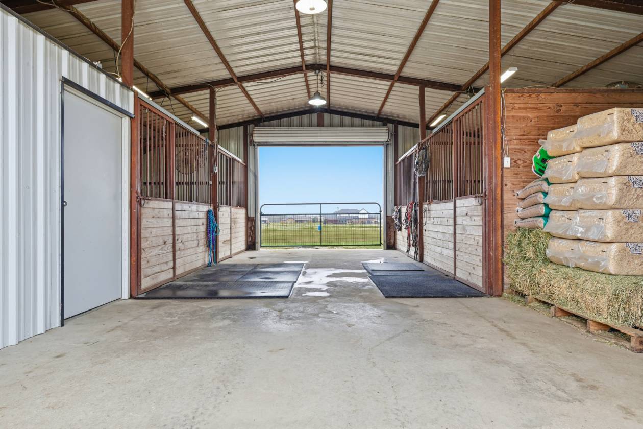Where Modern Luxury Meets True Horse Country Living! Welcome to your Modern Farmhouse retreat—a like-new 5-acre horse ranch in Rockwall County created for those who cherish their beloved furry companions and the freedom of country living. Why build when this thoughtfully curated dream home can be yours in just a few months? Relax on the wide front-porch rocking chairs or unwind on the back patio while your horses graze across open pasture, cool off in the shaded loafing shed, or train in the 80’ x 100’ cushion-sand practice arena. The like-new 4-stall barn has been designed for smooth, streamlined routines—with two 14' steel roll-top doors that allow drive-through truck access to the back pasture and arena, a dedicated tack room, hay and feed storage, and a convenient side passage door for backyard access without opening the large bay doors. Plenty of room, practicality, and thoughtful design make caring for your equine family a breeze.