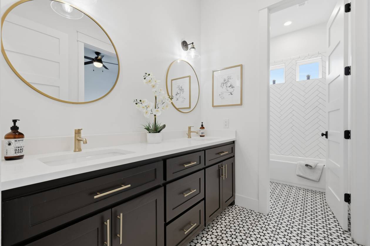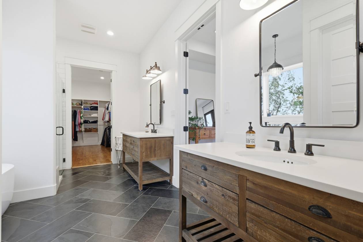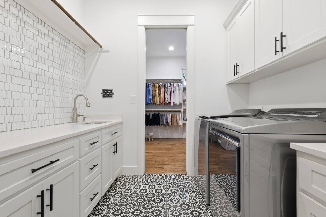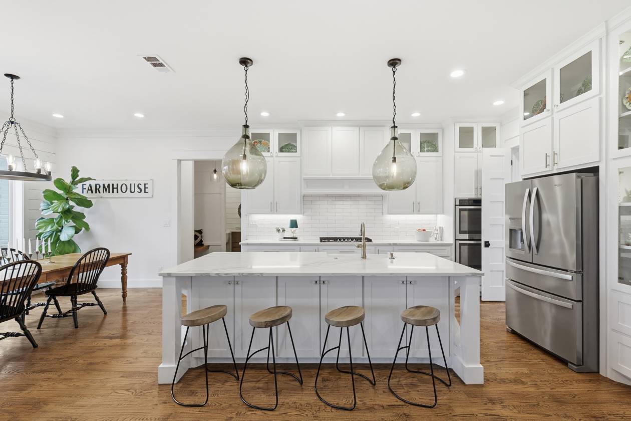 - The dream kitchen becomes a reality with pure-white custom cabinetry, gleaming quartz countertops, a huge center island, elegant glass-front display cabinets, and a perfectly appointed butler’s pantry—an ideal blend of style and function for everyday living or entertaining. The barely lived-in home is elevated with designer finishes, a chemically injected piered slab foundation, and open-cell spray foam insulation for long-term comfort and efficiency.