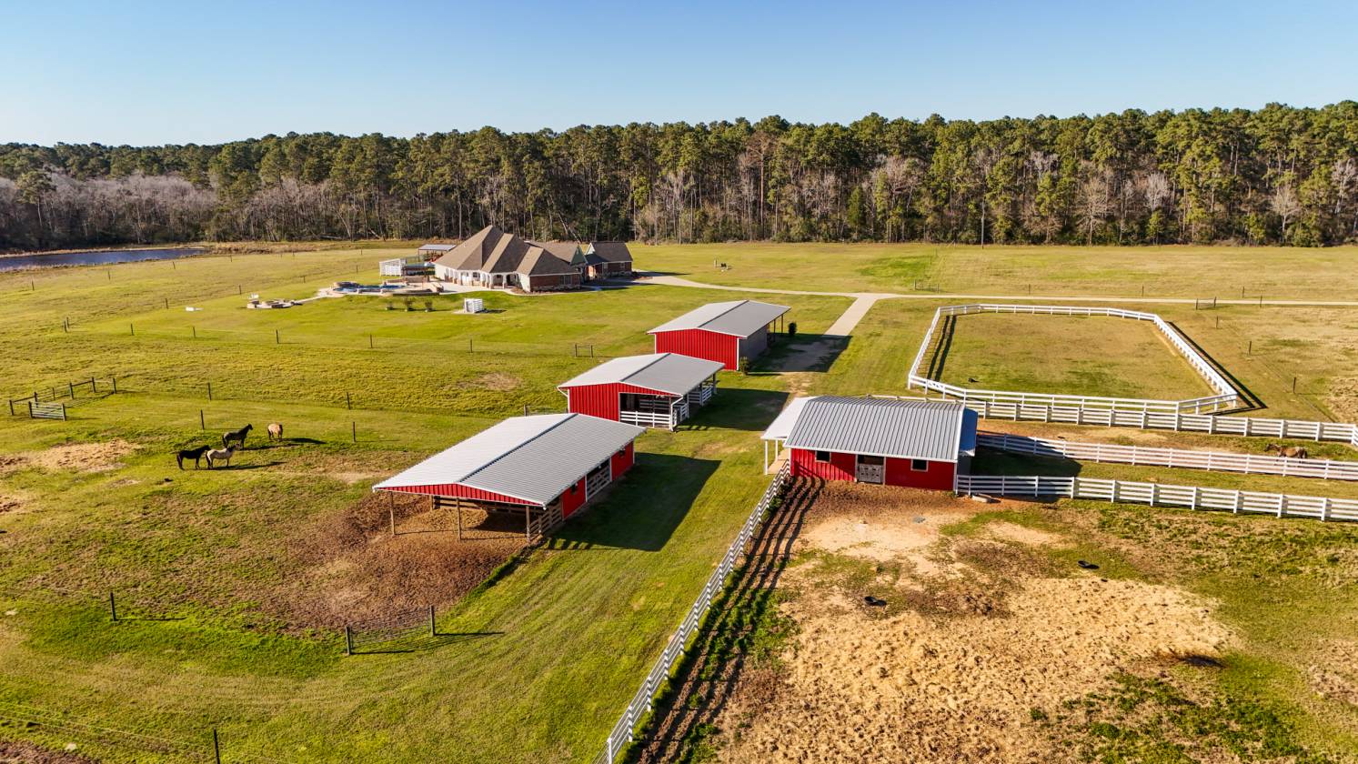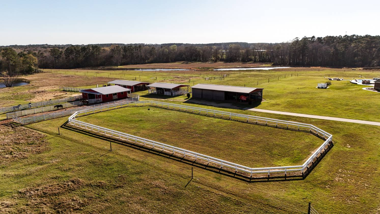 - A 100'x200' riding or training arena -Double-sided post and rail fencing for riders' safety.
