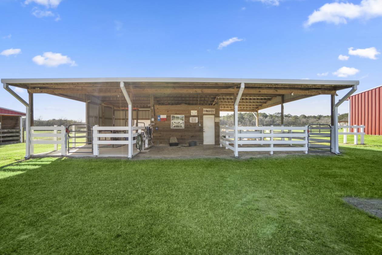 - 36'x39' Concrete floored barn with 4 stalls, complete with high quality Equi-mat, Priefert panel stalls and doors, Priefert powder coated hay feeders. (Electricity, water).