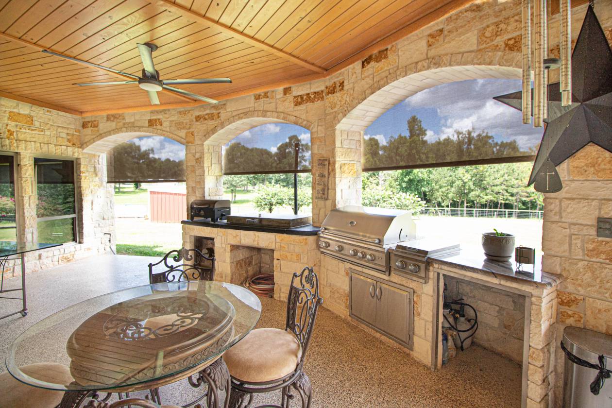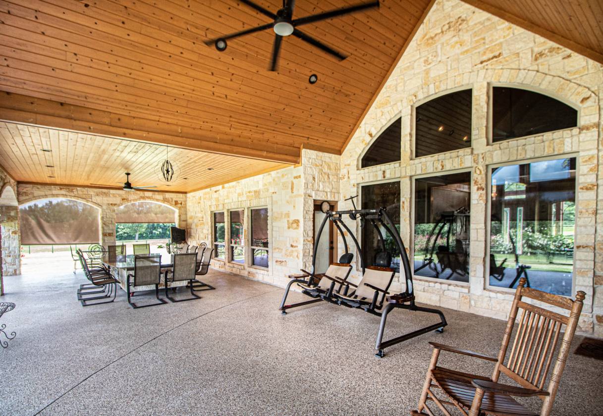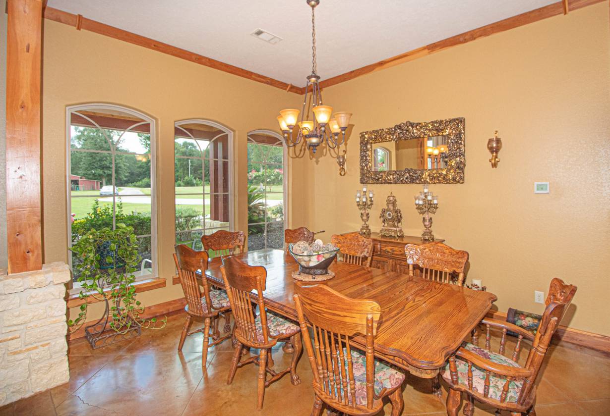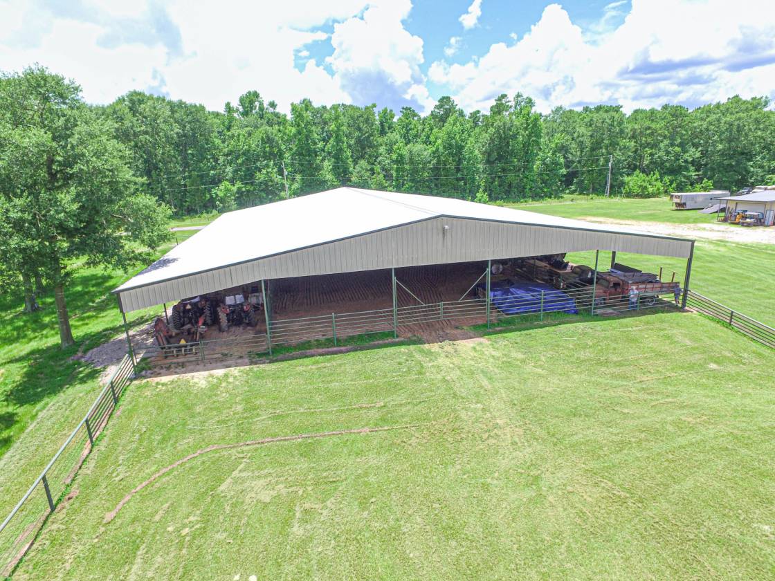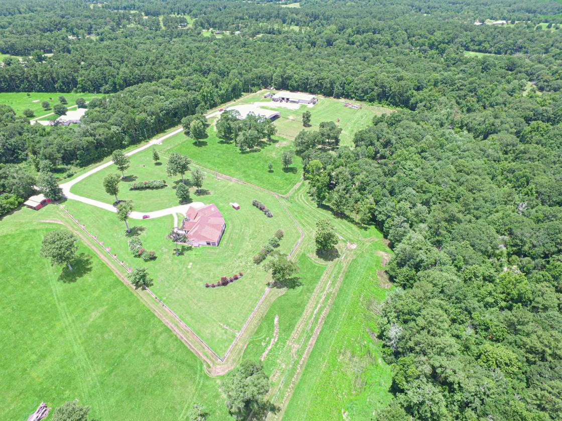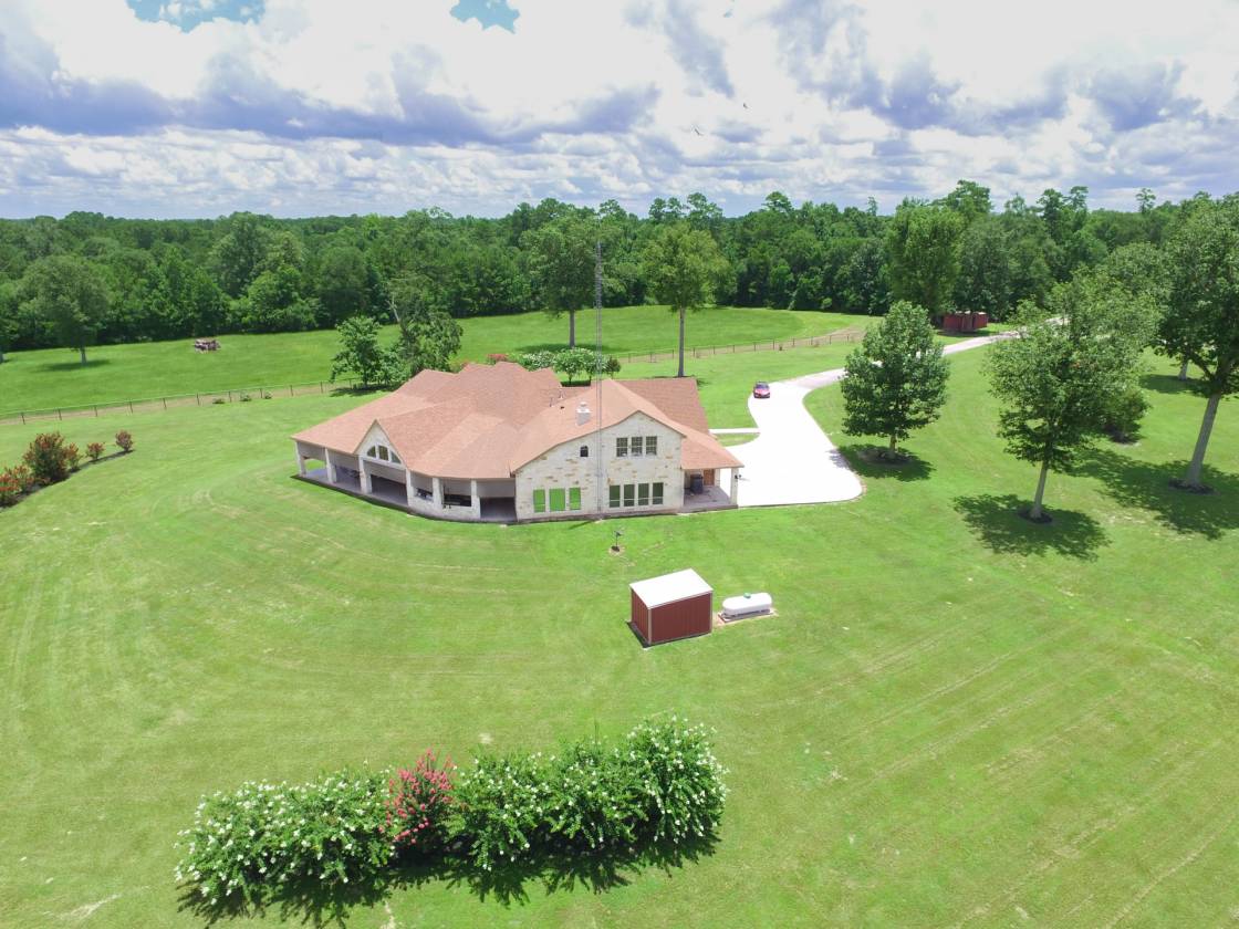 This stunning home and equestrian facility nestled in the secluded woods of The Sam Houston National Forest of southeast Texas with its many miles of scenic riding trails has no equal in this part of the country. Just 45 minutes to Houston BIAP and easy quick excess to Hwy 59 and I45 is within commuting distance to Houston and 2hrs from College Station. This property sports a 16000 sqft shop that could be easily transition into a veterinary or breeding facility complete with a 2/1 apartment with fireplace highly upgraded. With plenty of space for trailer and equipment storage under roof. The pasture is highly improved and maintained with a year-round flowing creek.