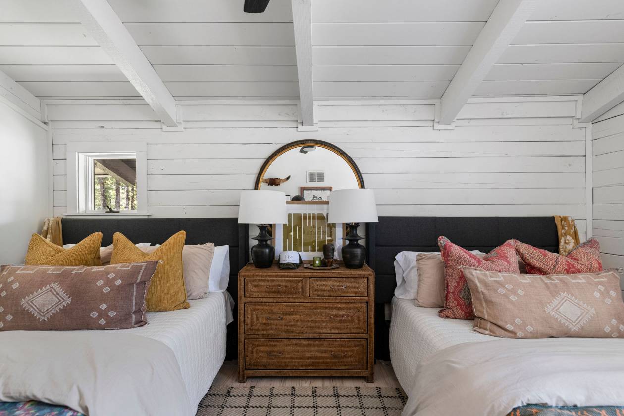 CURATED. BOLD. CHARMING. Nestled beneath a canopy of towering trees in the heart of East Texas, Limestone Hill Ranch is more than a ranch—it’s an experience. From the moment you pass through the private gates, a sense of calm settles in, & the pace of life slows. Where Round Top style meets bold architecture & timeless country charm, this reimagined midcentury modern log home is a masterclass in curation. Clad in sleek black & Austin stone, the residence makes a striking first impression, softened by natural beauty of its surroundings. The approach is magical: a winding driveway framed by dense woods, opening to a home that feels at once sophisticated & organic. The expansive front porch is its own living space, beckoning for slow mornings & lingering evenings. Inside, sky-high cathedral ceilings w exposed beams, massive windows overlooking the pond, & rustic stonework create a great room that inspires awe. Every space flows seamlessly—bar, dining, kitchen, & porch—designed for both intimate gatherings & grand entertaining. The kitchen, bathed in light from soaring ceilings & a skylight, continues the theme of bringing the outdoors in. The split-bedroom layout offers privacy & function: a primary retreat & bunk room (or office) on one wing, two guest suites on the other. The primary bedroom is a sanctuary of its own, w vaulted beams, another Austin stone fireplace, & a spa-like bath. An additional den provides a cozy hideaway, perfect for fireside evenings & movie nights. Every detail of the home has been curated w rustic Texas flair, blending chic design & authentic character. Beyond the walls, the land invites exploration: a private trail system winds past the pond, leading to serene back acreage. A stone firepit overlooking the water is ideal for morning coffee or wine & s’mores beneath the stars. Practicality meets luxury w a backup generator, improved grasses in the front meadow (ideal for a 3±AC pasture), & furnishings available separately for turnkey move-in.