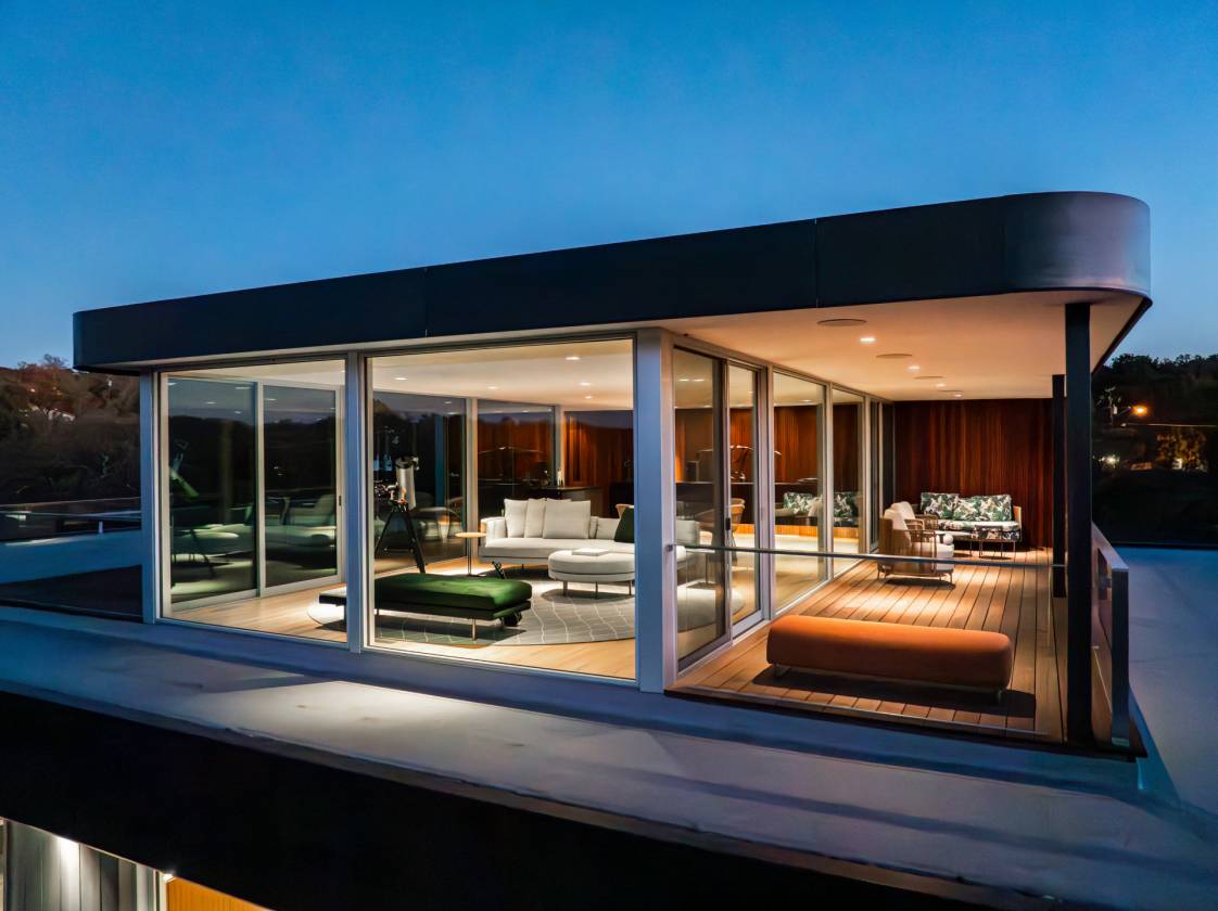 - In addition to the theater, the Dynaudio speakers can be found throughout the home, powered by SONOS amplification. The residence is efficiently heated and cooled by a Geo-Thermal system, and the entire structure can be powered by a 38 KW Kohler water cooled natural gas generator or solar panels that are situated and hidden on top of the three-car garage, which sits adjacent to the home and has one EV charging station as well as two additional outlets for charging.