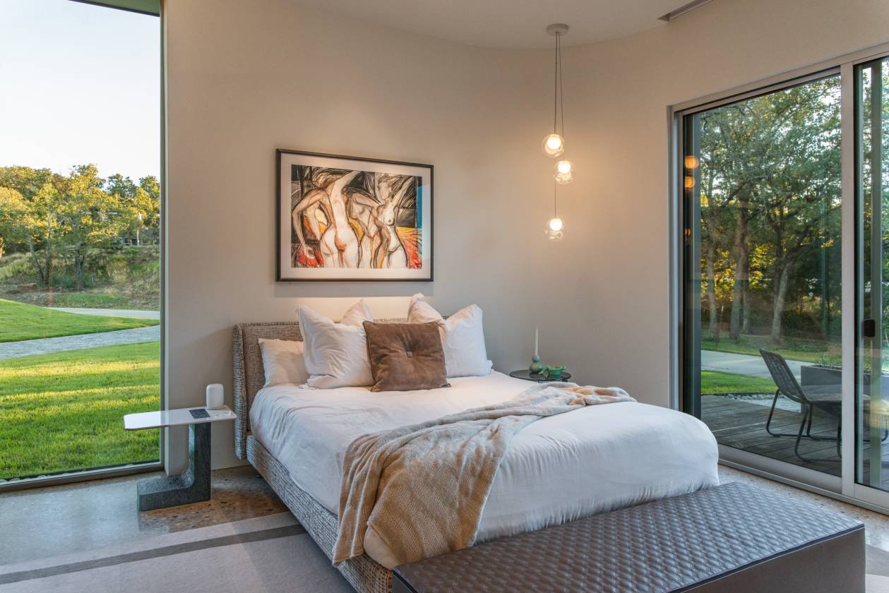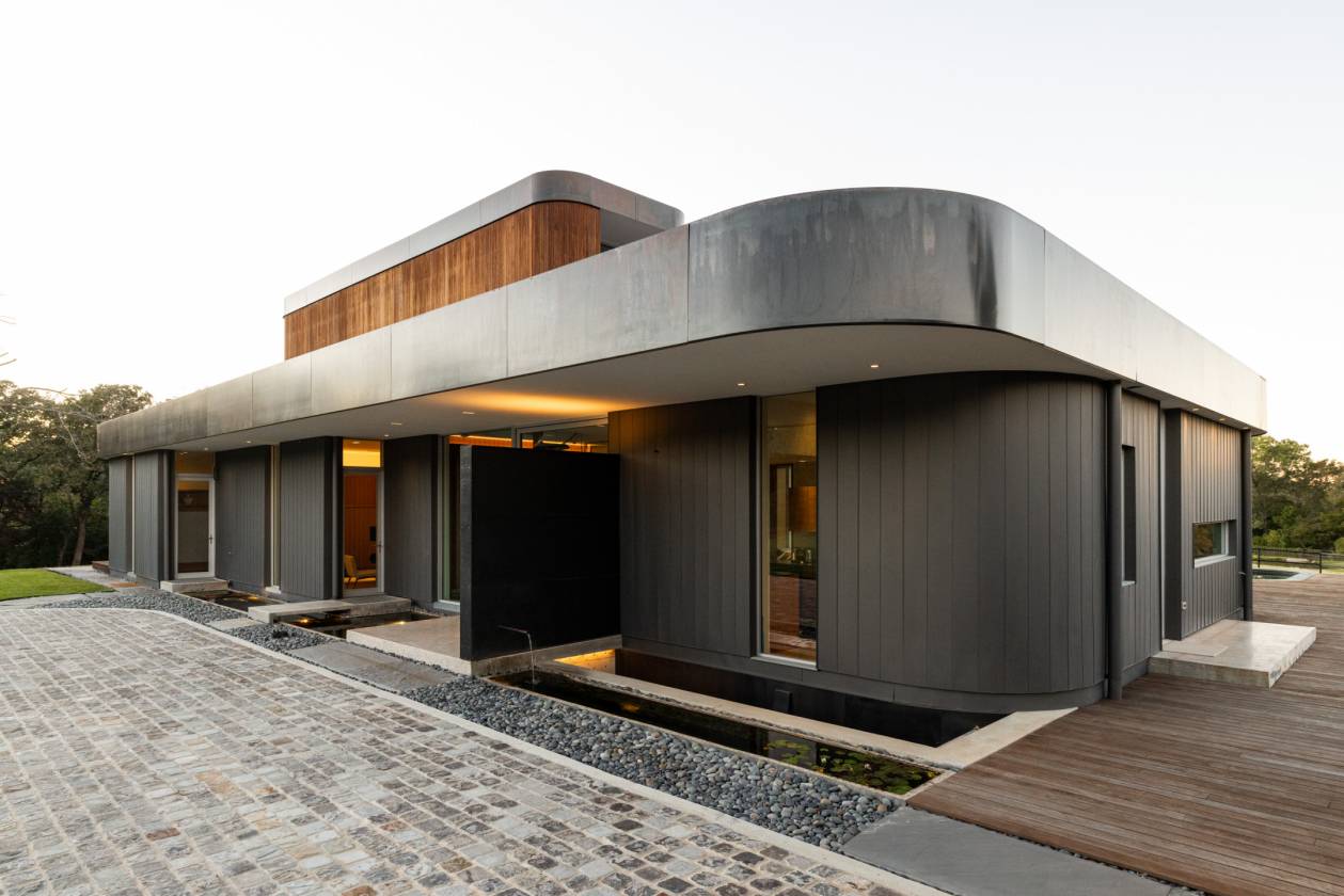 - This custom designed home was completed in 2022 and is truly an example of elegance as it sits on the highest point of the property. Hear the rumble of your tires on the cobble stone drive as you approach the house and take in the modern architectural masterpiece that awaits. Situated on either side of the main door of the home is a beautifully understated Koi pond that welcomes visitors before entering through the massive glass door and entry way. The home is constructed of insulated concrete form (ICF) with steal joists and a deck roof system. Walls and windows of the home provide superior thermal and sound insulation. After walking through the threshold, you will notice a grand view all the way through the living areas of the house, overlooking the 3,000 SF IPE back deck, 80 ft long salt water swimming pool, through the pasture to the equestrian facilities.