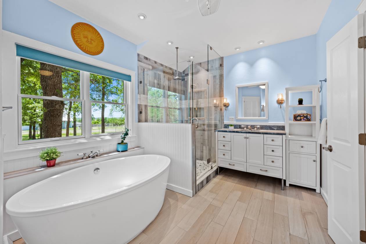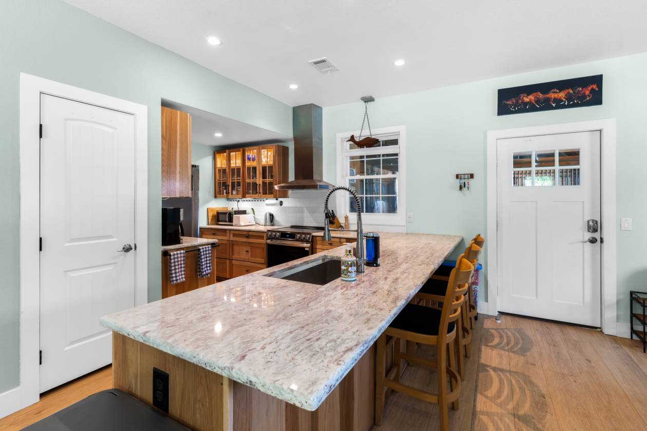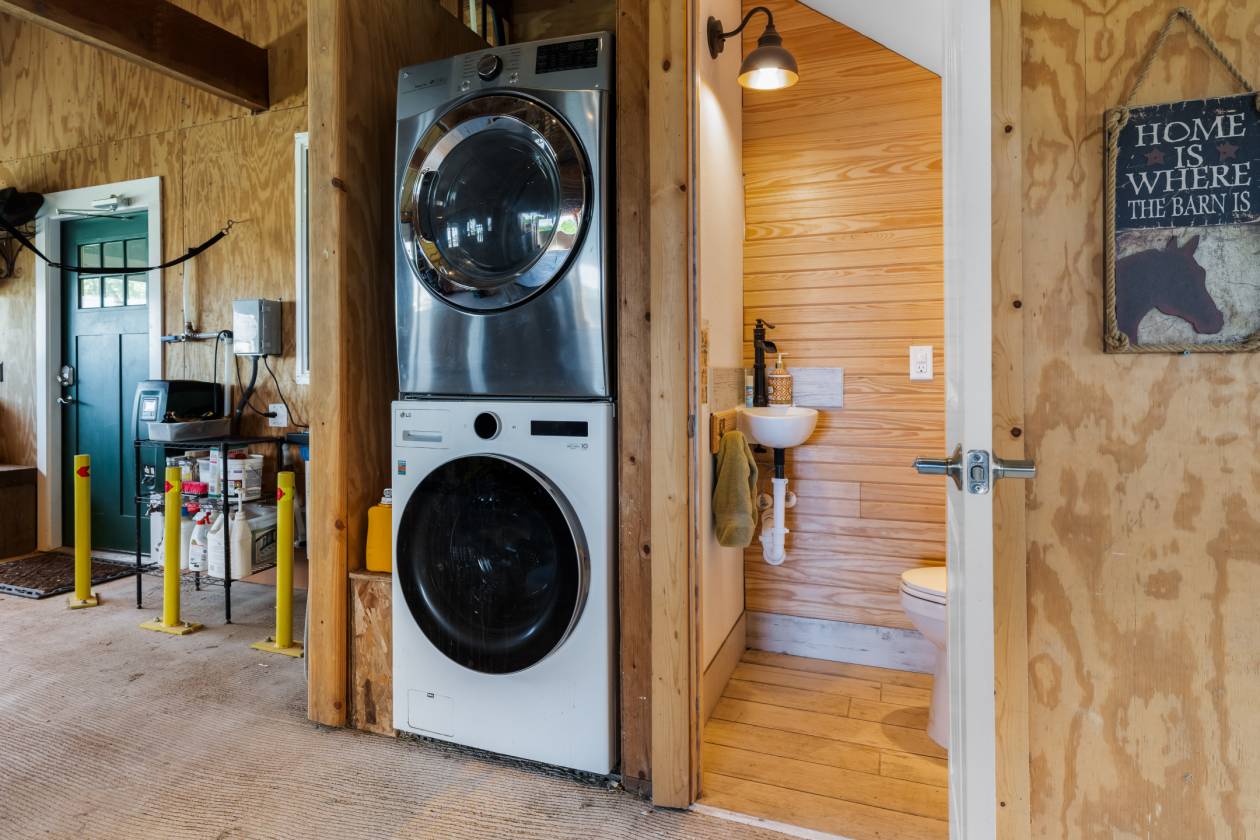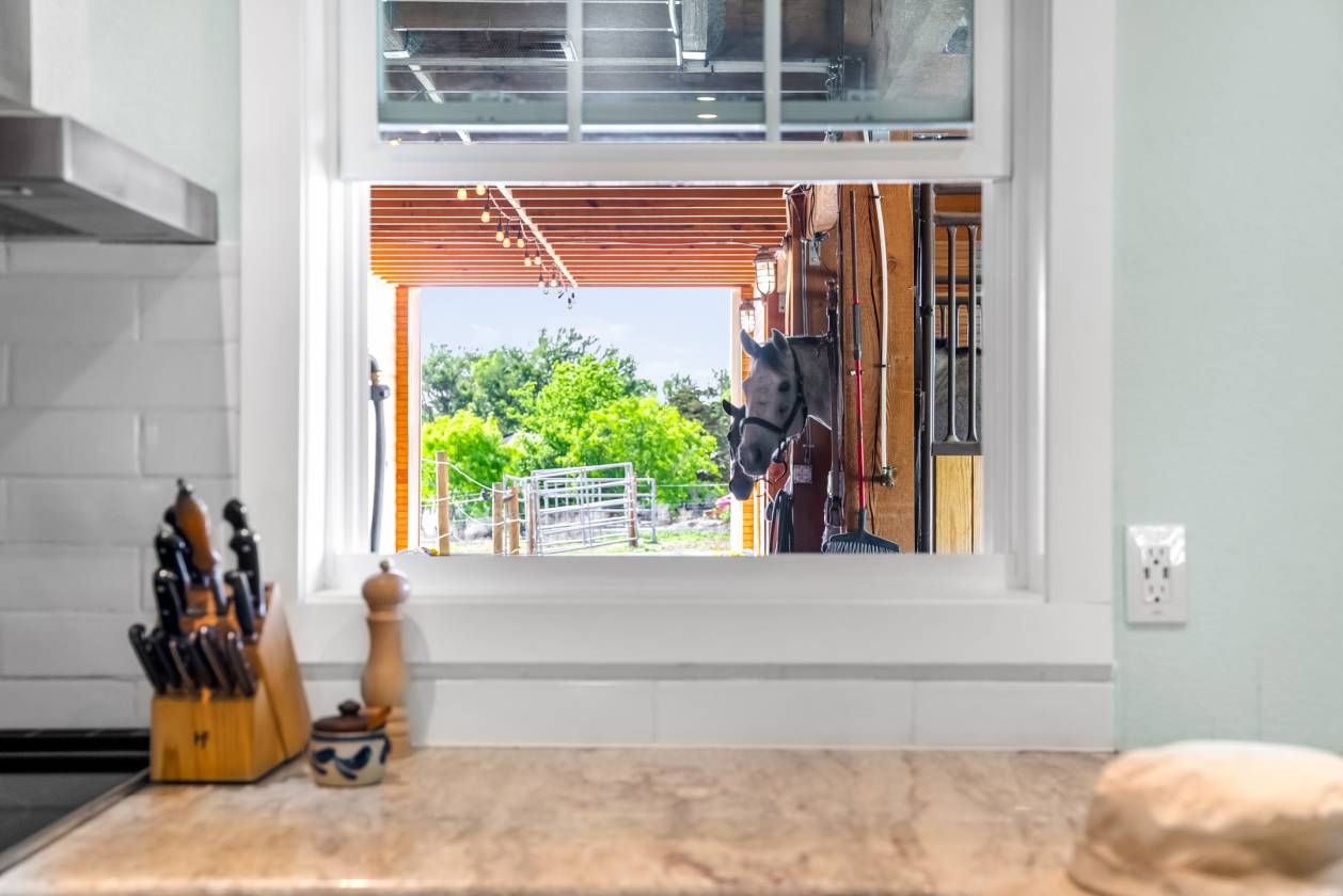 - Barndominium has attached barn access and view of the stalls from the kitchen window.