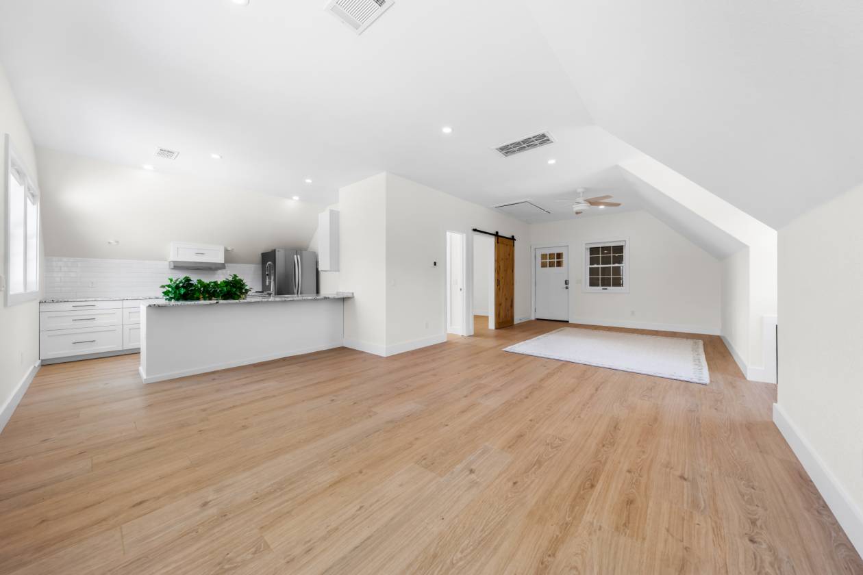 - Barndominium second-floor residence offers a cozy 793 square feet with one bedroom and one bath.
