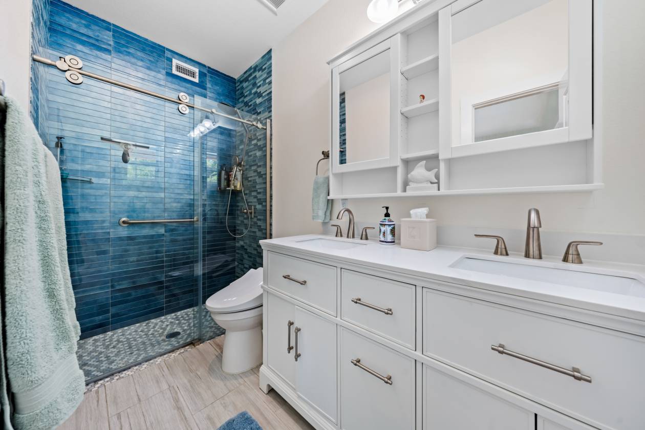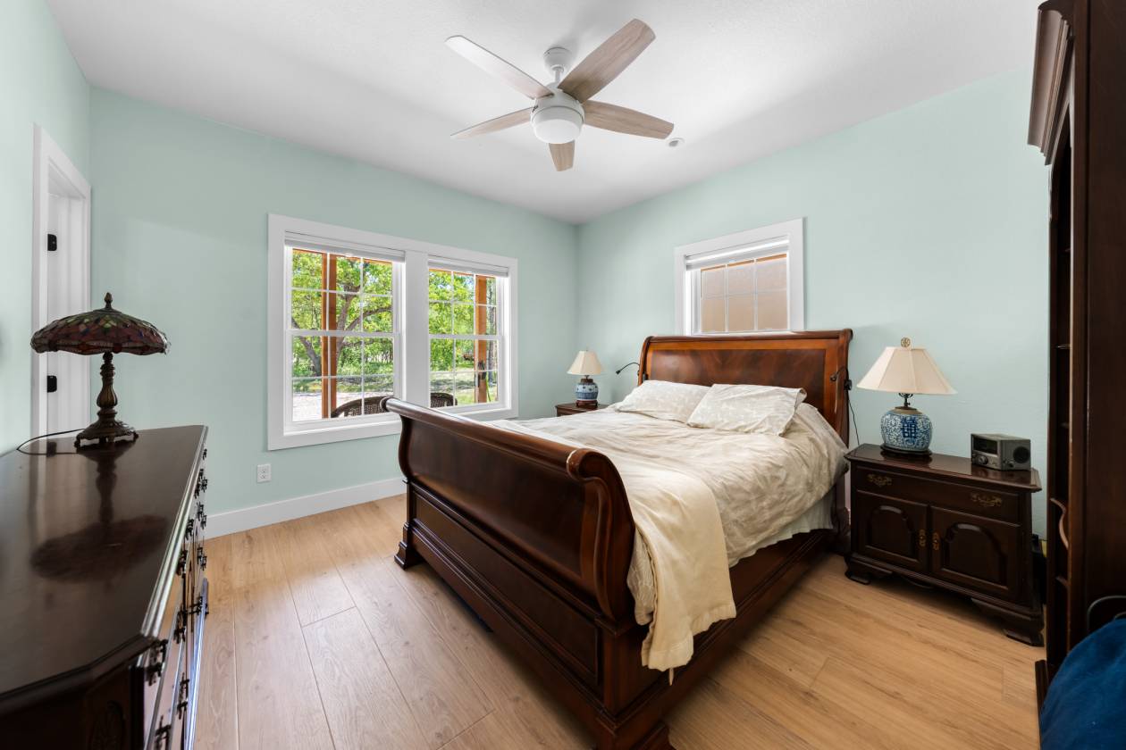 - Barndominium ground-floor residence spans 1,170 square feet with 2 bedrooms and 2.5 baths.