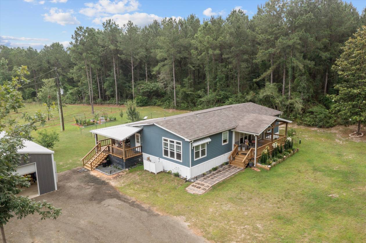 Experience the ultimate country lifestyle in this pristine 2022 manufactured home, beautifully situated on 11+ cleared acres perfect for horses, cattle, goats, or chickens. Designed with comfort and functionality in mind, this customized floorplan features 3 bedrooms, 2 baths, & spacious living areas. The home’s well-appointed kitchen and open concept layout make it ideal for entertaining or relaxing while enjoying immaculate views of the surrounding landscape. Equestrians will delight in the 4-stall horse barn complete with a custom-built tack room, plus there’s a dedicated barn/RV shed and a one-bay metal shop/garage to accommodate all your vehicles and equipment. When it’s time to unwind, immerse yourself in your refreshing above-ground pool with expansive sundeck, an outdoor shower, and large front and back covered porches that overlook the property’s impeccably maintained gardens & mature fruit trees. The expansive grounds are framed by dense woodlands, providing utmost privacy. All measurements are approximate and must be independently verified. Halo water filtration system servicing the private well (filterless), ensuring fresh and clean water. Custom tack room, barn, metal carport shading for horses, 20x40 shop, overhang 20x40, shop is insulated and has electric. All fencing is ready for horses or livestock. Lots of wildlife. Peach, pear and pecan trees. Shelves will stay with the shop. Appliances will remain with the home. The CR 3220 has been decommissioned by the county and no longer exists