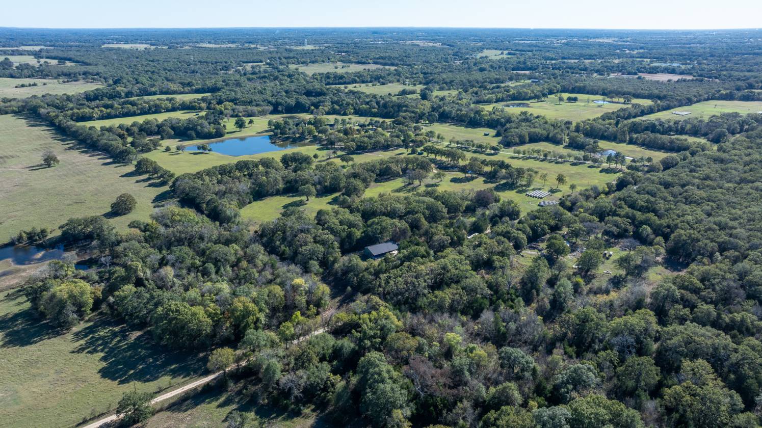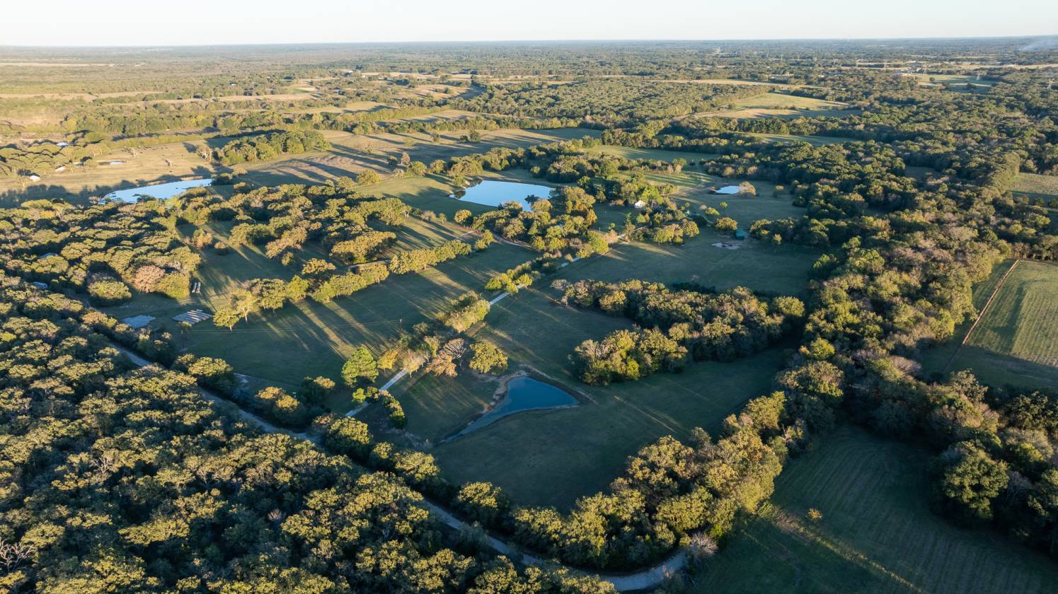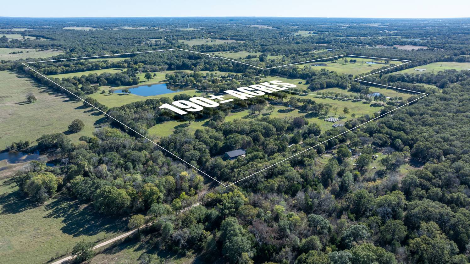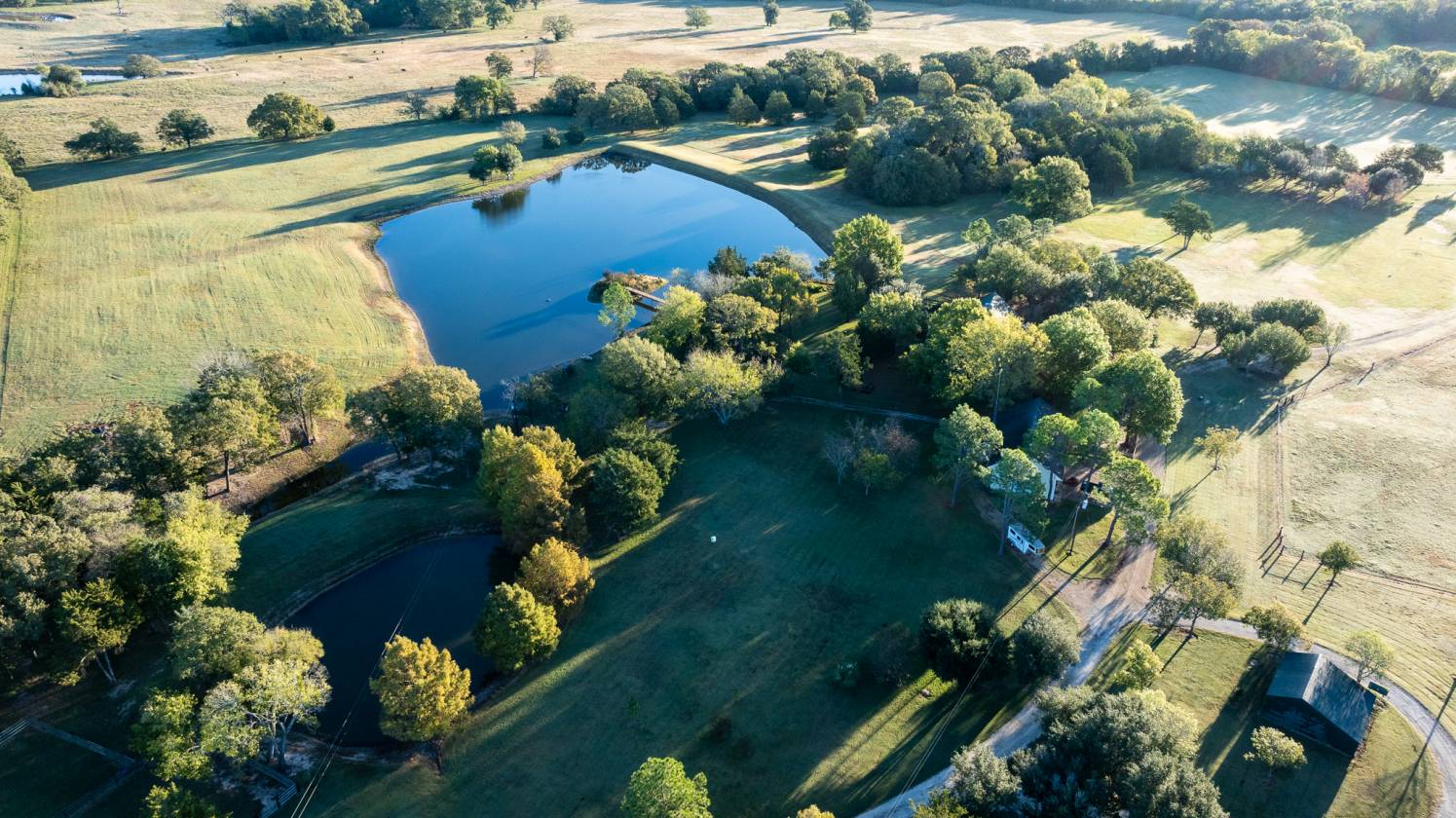 The Pharme is 190± acres of manicured land, stewarded by a love for nature and horses. The topography of this ranch is a mix of rolling grassland and maintained forest. The homestead is rich in history and character with its two original wooden cabins and boasts a 5,600 square-foot home with 5 bedrooms and 4. bathrooms, a shop with significant storage, an equipment shed, and stunning mature pecan trees. There are 9 ponds throughout. The property has previously been used for horse breeding and as a peaceful family getaway but is very versatile in its makeup.