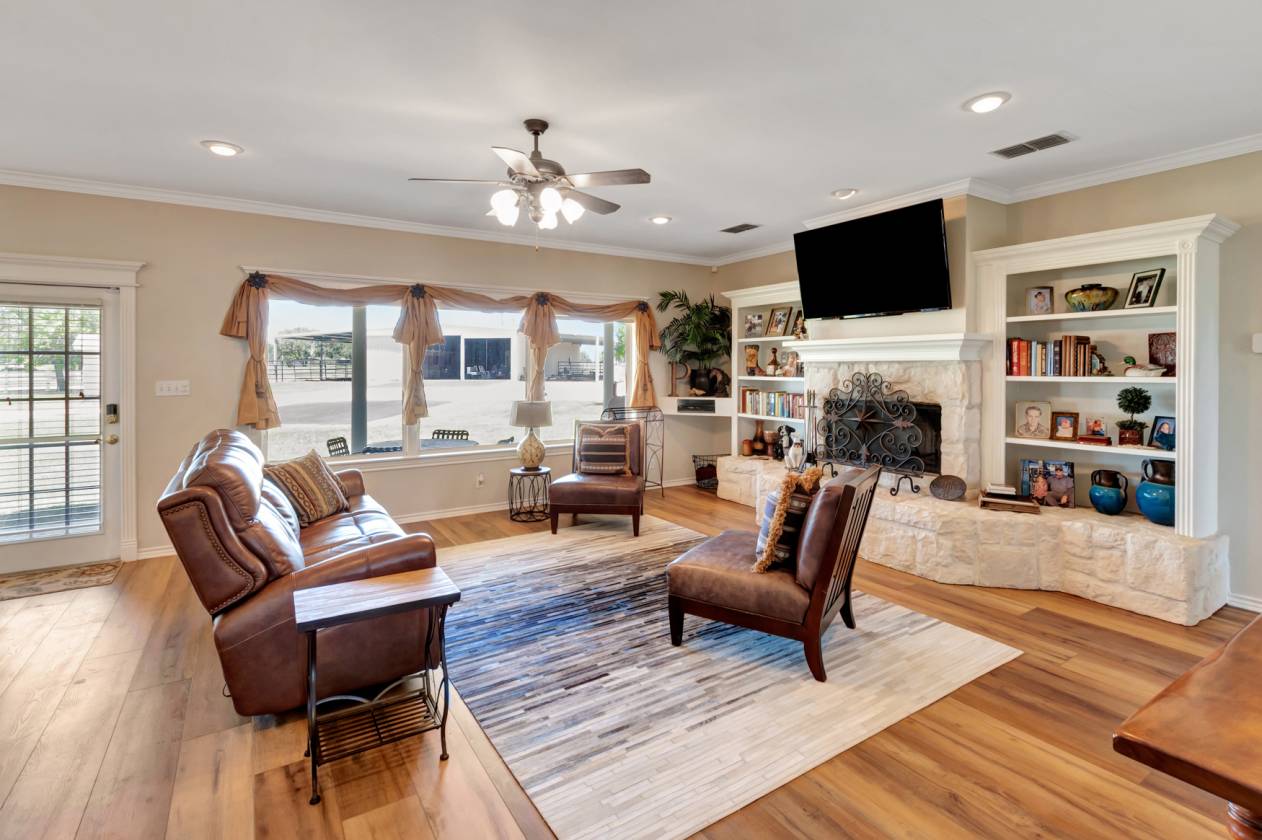 Country comfort, Classic Texas! Experience the perfect blend of rustic charm and modern updates with this stunning custom-built ranch-style home set on 23 picturesque acres just minutes from town. With over 3,000 square feet of living space, this 4-bedroom, 4.5-bath home offers a spacious and functional layout ideal for both everyday living and entertaining. The heart of the home—the kitchen—has been thoughtfully updated with modern finishes, and newer flooring has been installed throughout the downstairs, adding a fresh, inviting feel. Designed with horse lovers in mind, the property features a 6-stall horse barn complete with a tack room and feed room. The land is fully fenced and cross-fenced, ready for your equestrian or livestock needs. Whether you're looking to enjoy wide open spaces, raise horses, or simply escape to a private rural retreat while staying close to town, this property offers a rare opportunity to have it all.