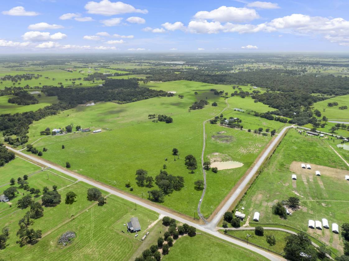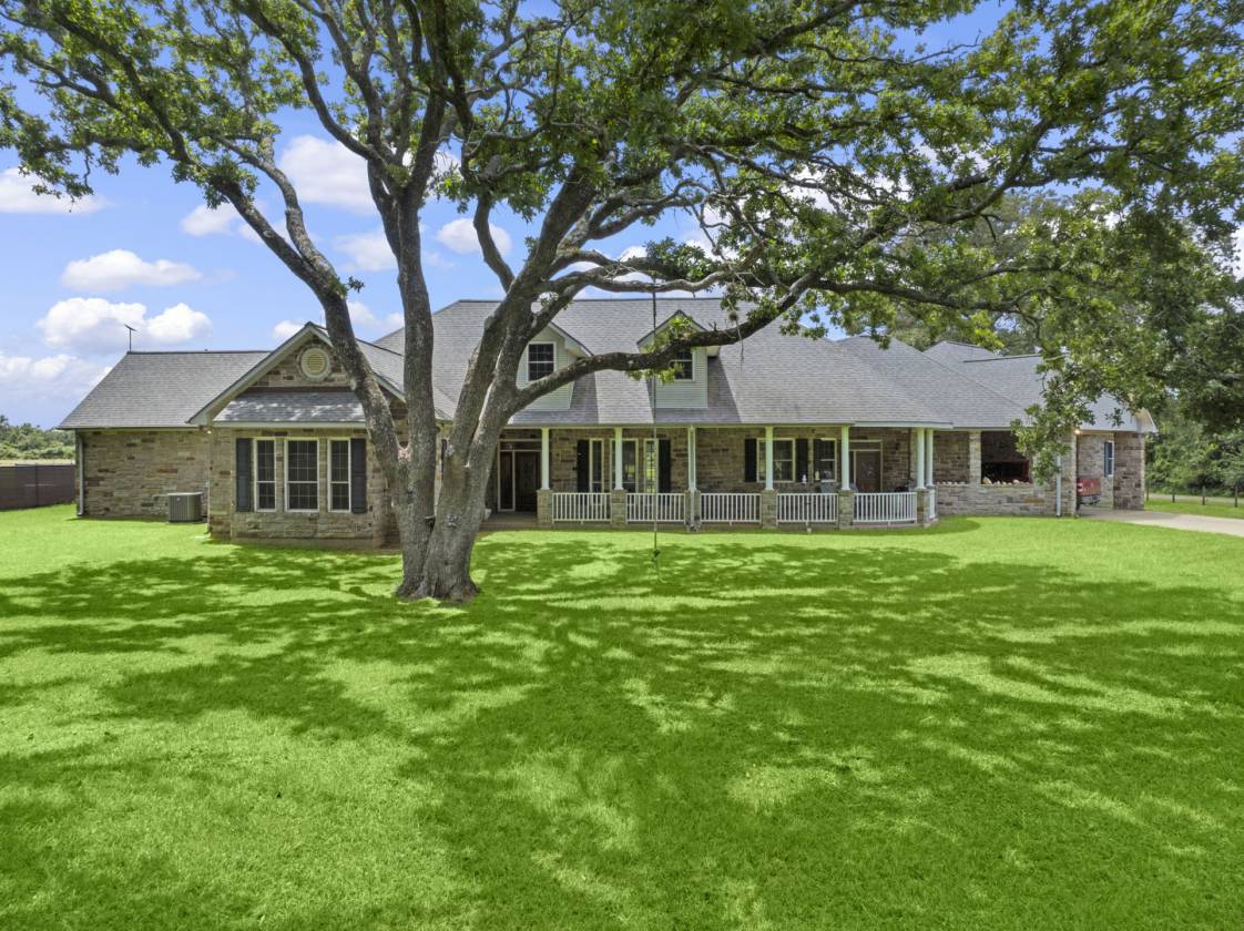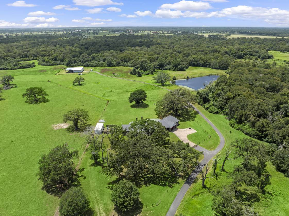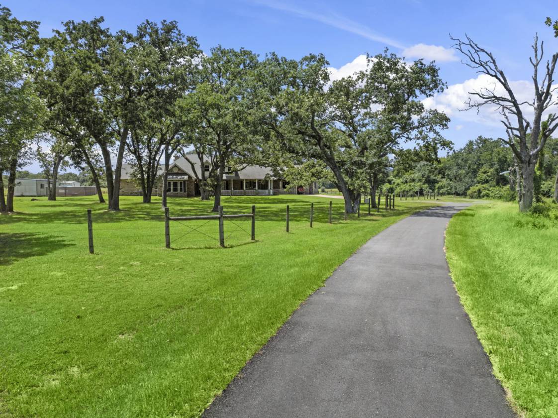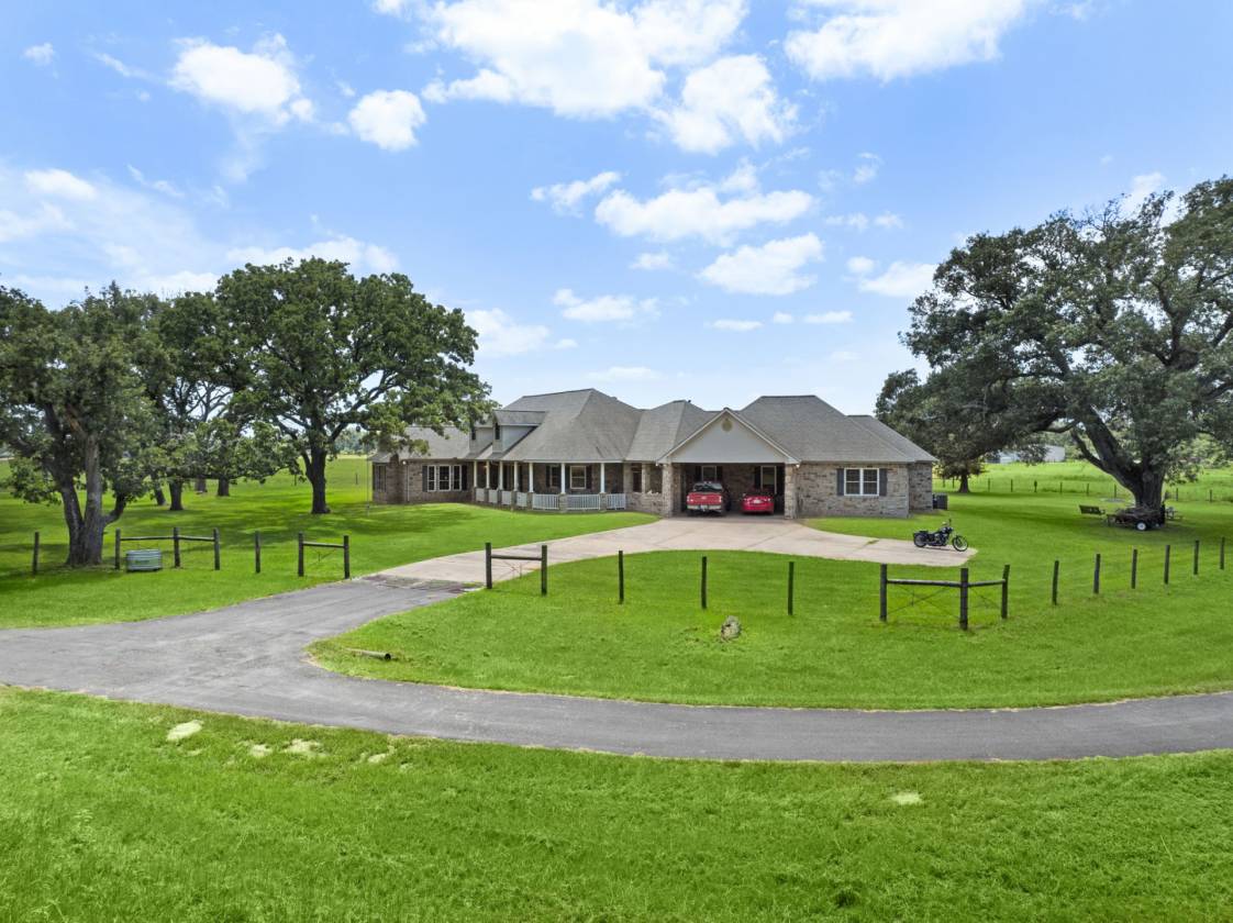 Exceptional ranch spanning 151.848 acres in Hempstead. Rolling pastures and mature oaks line the drive to a distinguished 4,480 sq. ft. stone residence. 2,760 sq. ft. barn, complete with a 3-ton crane, full bath, second floor storage, dual overhead doors, extensive shelving, and a 2,691 sq. ft. overhang. Three stocked ponds, deer stands, abundant wildlife, and more make this a truly unique opportunity.