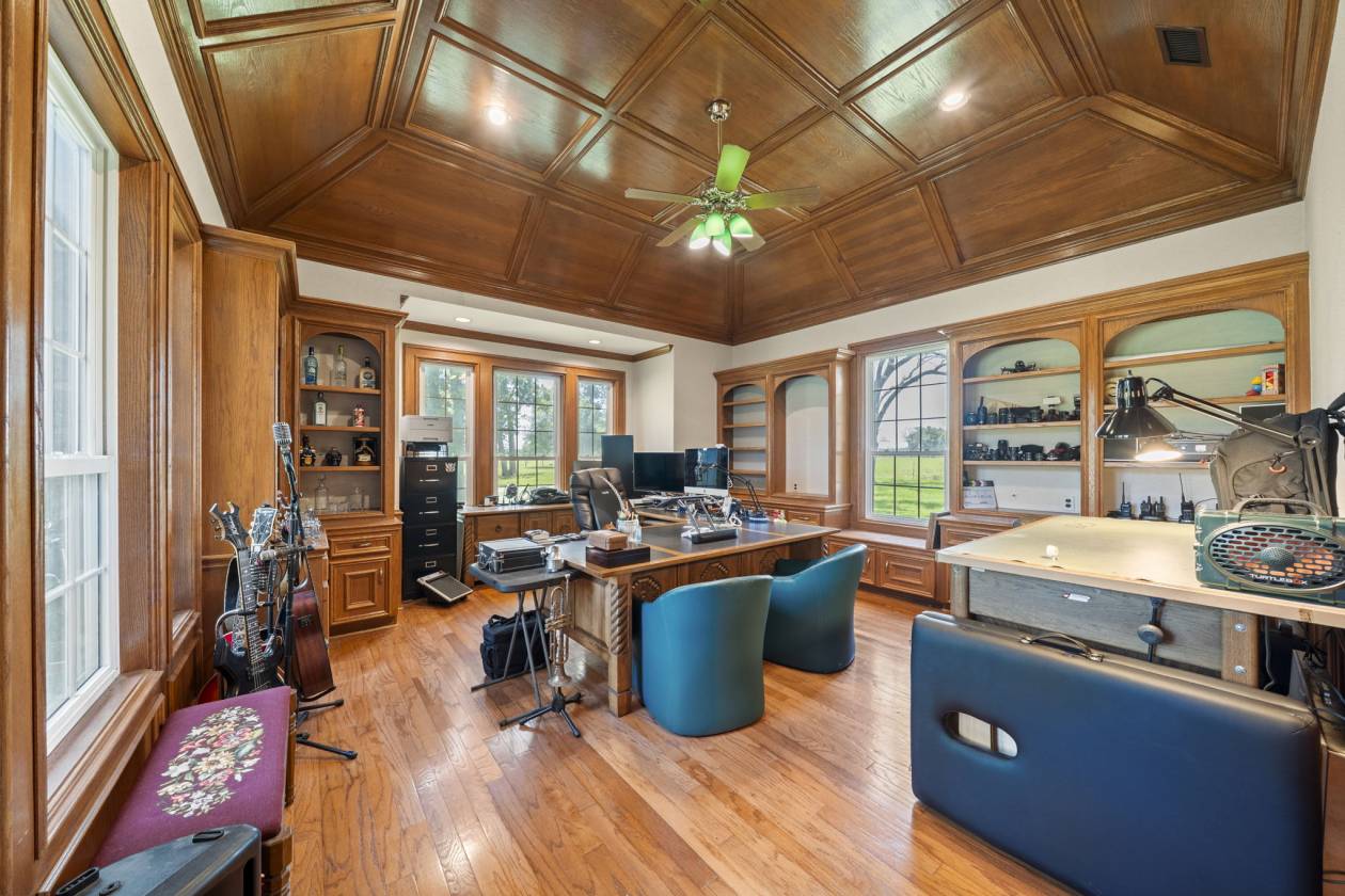 - Exceptional ranch spanning 151.848 acres in Hempstead. Rolling pastures and mature oaks line the drive to a distinguished 4,480 sq. ft. stone residence. Custom wood flooring and wainscoting throughout many living areas, while the primary suite includes a stone fireplace, bay window, sitting area, and expansive spa-style bathroom. The kitchen is equipped with an Imperial oven, two sinks, walk-in pantry, ample cabinetry, generous counter space, and a breakfast bar—ideal for culinary enthusiasts. Panoramic views can be enjoyed from every window. Additional amenities include a study with custom millwork, a secondary study/library, en-suite bathrooms for all bedrooms, a spacious utility room with sink, and a 2,200 sq. ft. floored attic. 2,760 sq. ft. barn, complete with a 3-ton crane, full bath, second floor storage, dual overhead doors, extensive shelving, and a 2,691 sq. ft. overhang. Three stocked ponds, deer stands, abundant wildlife, and more make this a truly unique opportunity.
