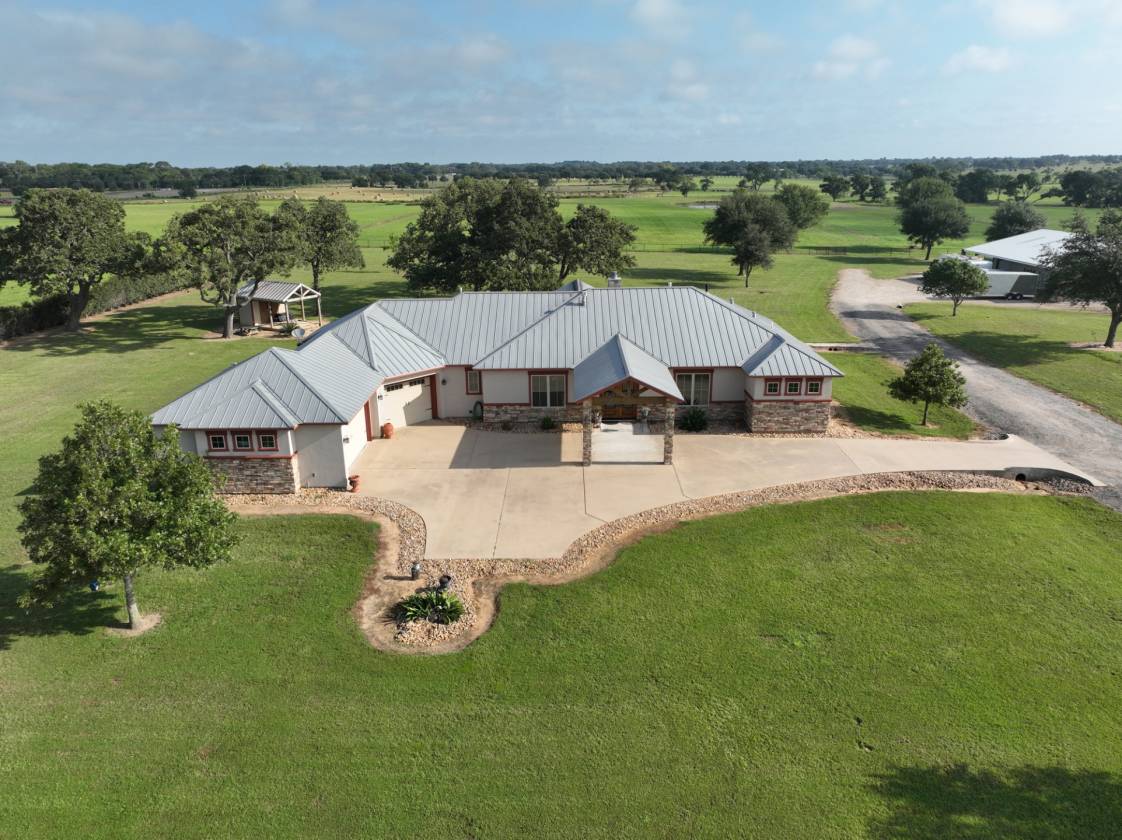 Enjoy the perfect blend of Texas elegance and modern convenience at 41968 Kelley Rd, Hempstead, TX. Situated on 19.485± ag-exempt acres, this custom 3,339 sq. ft. single-story home (2011) offers 3 bedrooms, 4 baths, and a 3-car garage with porte-cochere entry. Inside, you’ll find stained concrete floors, soaring ceilings, stone fireplaces, home office, granite finishes, and expansive windows overlooking the pool, outdoor kitchen, and wide-open Texas skies. The chef’s kitchen, spa-like primary suite with copper soaking tub, and seamless indoor-outdoor flow create a true retreat. Horse/livestock enthusiasts will appreciate the 40X60 barn with 3 stalls, full apartment, A/C storage/tack rooms, and pipe turn-outs. With perimeter fencing, cross-fencing, improved grasses, and a stocked pond, the land is ready for cattle, horses, or hay production. Just minutes from town yet worlds away, this estate embodies the essence of refined country living in Waller County.