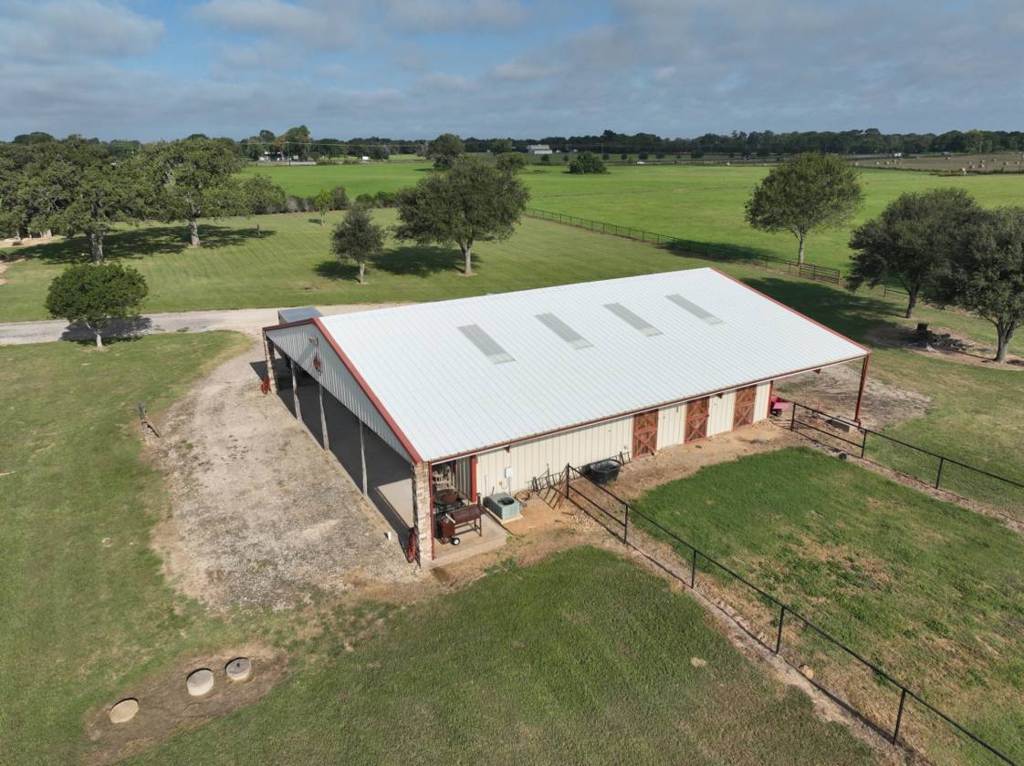 - Back of barn has overhang and equipment parking