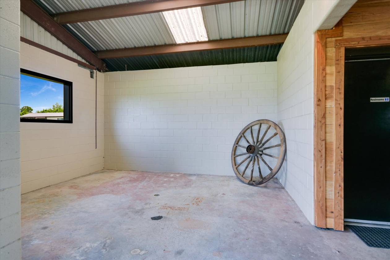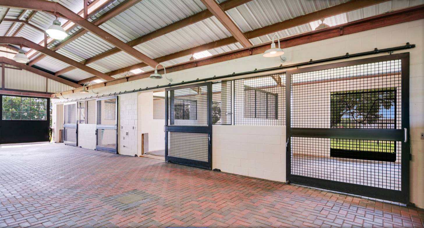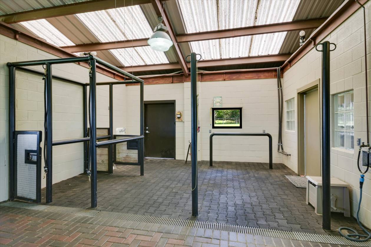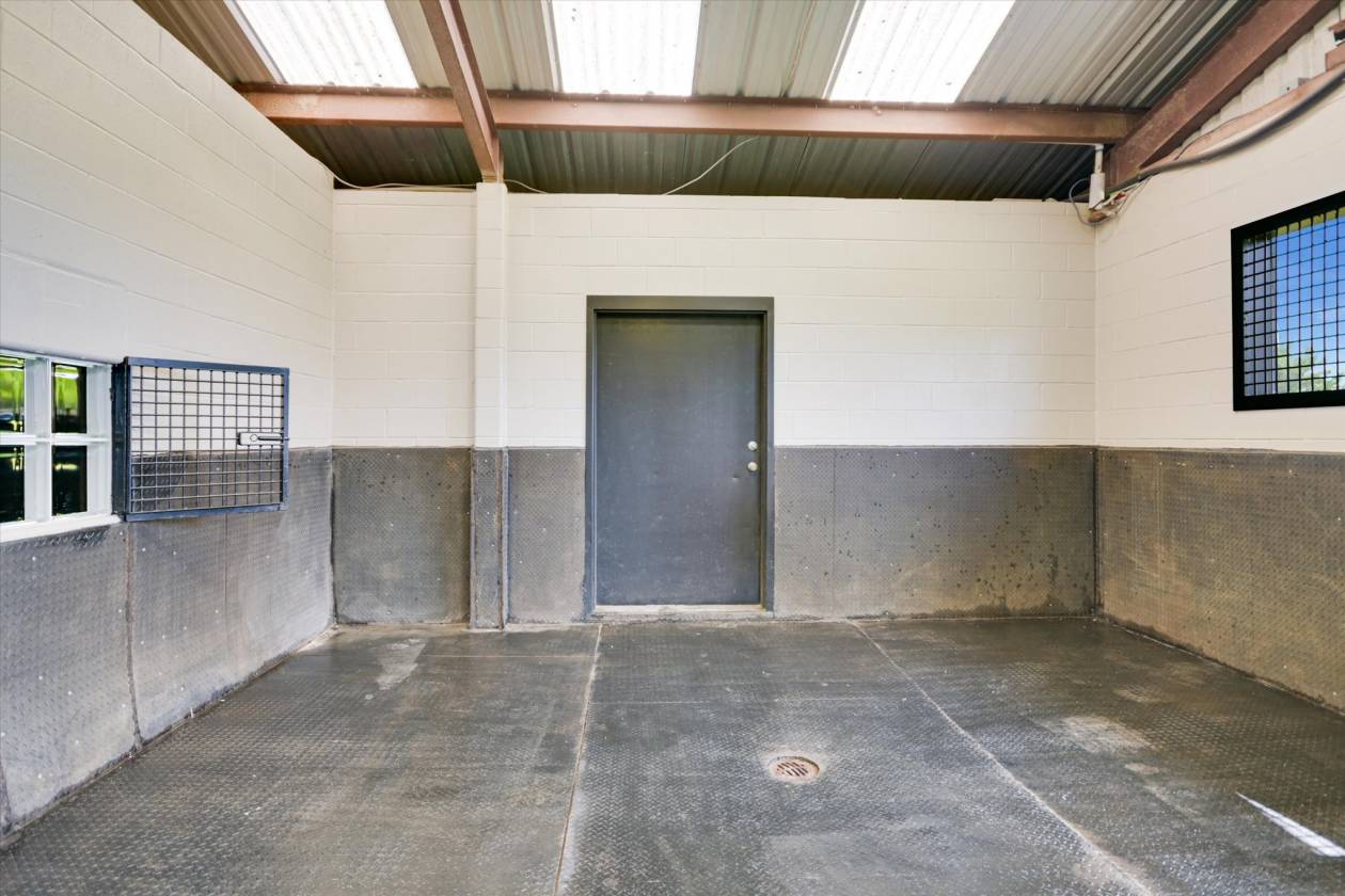 - Equestrians will fall in love with the thoughtfully designed 40 x 80 barn featuring four walk-out/sliders, professional lighting, and full plumbing—plus a versatile office that doubles as a fully reinforced storm shelter. No barn should be without a foaling station, tack room, or horse washing area.