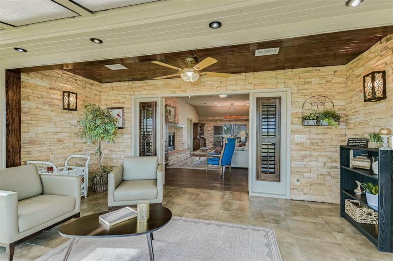 - Large Oaks shade the main house. Entertain the family and guests with three pergolas, firepit, pizza oven, hot tub and lots of seating. This property includes a 1,997 sf, 3 bedroom, 3 ensuite bath main home and a guest house tucked in the corner of property.