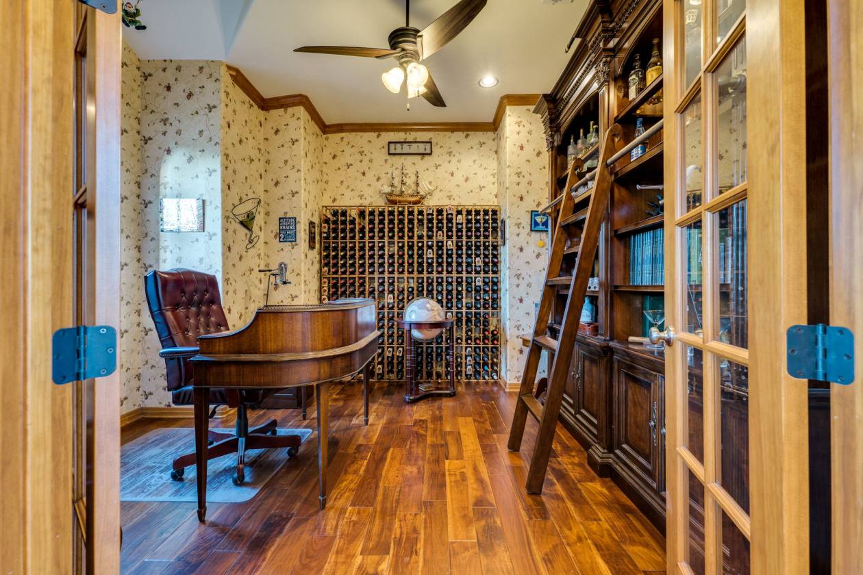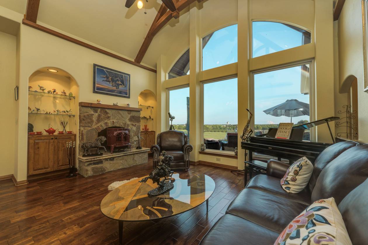 - This stunning 3,180 square foot custom home built in 2011 showcases luxury living at its finest with four bedrooms, 3.5 bathrooms, finished 2-bay attached garage, and soaring 10-foot ceilings throughout. The primary suite on the main floor features vaulted ceilings, dual walk-in closets, and a spa-like bathroom with a double walk-in shower and tub, while offering breathtaking sunset views over the pasture. The heart of the home centers around an open-concept design where the gourmet kitchen with electric/propane cooking connects seamlessly to the breakfast nook and bonus seating area - creating the perfect morning coffee spot to watch horses in their stalls. Custom cabinetry, premium flooring, vaulted ceiling with oak beams, and a striking stone fireplace with wood burning stove in the living room overlook the backyard oasis featuring a 25,000-gallon fresh water pool with ionization system, spa, and outdoor kitchen with fireplace - ideal for luxury entertaining and family gatherings.