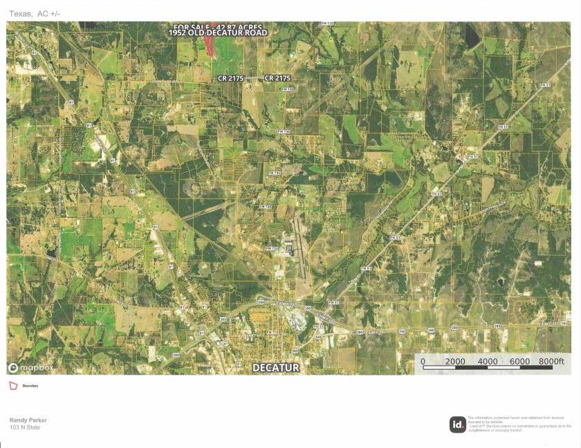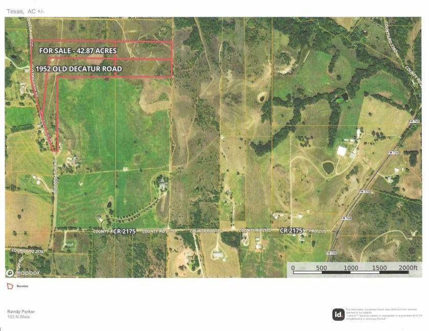 Developers, investors or simply an individual wanting your own property to build your home on, have a horse property or your own small ranch for cattle and livestock then you must check this out. This property is beautiful land with some rolling hills and slopes and views as far as you can see including incredible sunsets and the courthouse in Decatur. The view will greatly accent any development or plan you have. The total acreage is 42.87 acres of land just 4.6 miles north of Decatur off of N FM 730 on Old Decatur Road. This beautiful area will only add to whatever you desire your property to be, and it is only minutes to all of the amenities Decatur has to offer as well as on to the Metroplex. The acreage consists of 1,757 feet of county road frontage on Old Decatur Road giving it great access for any kind of development you want. Land like this is getting in short supply in our area and won't last long. SEE IT TODAY!