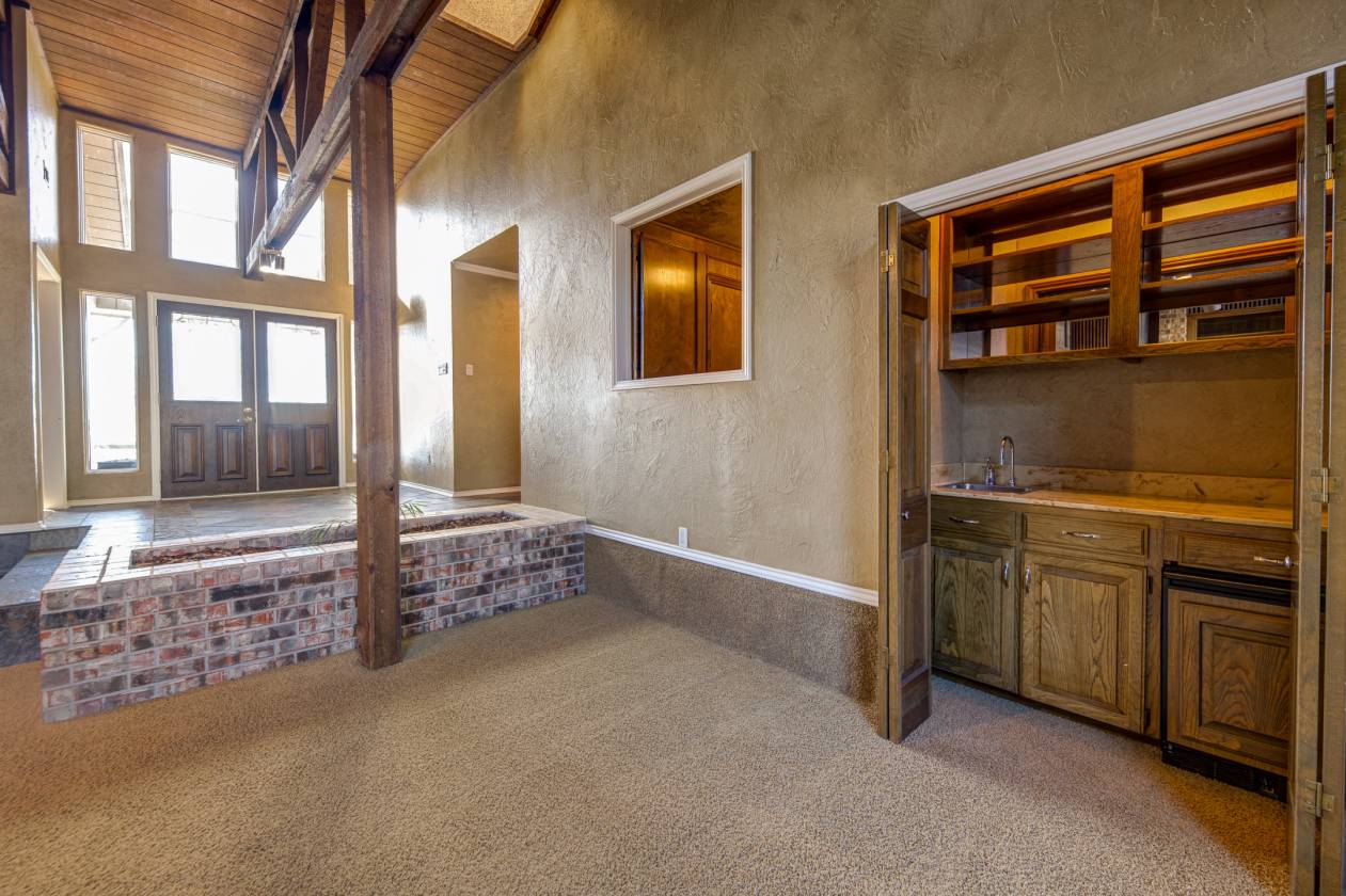 - This incredible home with sunken living room, large beams along with so many extras. With the 4 bedrooms and 3.5 bathrooms in the main house you will have plenty of room for your large family or visiting friends. With a large pool and spa in it and beautifully landscaped area around the property along with the 1,024 sq ft pool house which could also easily be a guest or mother in laws suite. It has space for a bedroom, a large game area and also has a hot tube located indoors. There are changing rooms and a bathroom as well as a kitchen. It has a large covered outdoor grilling area for entertaining as well. For the sports enthusiasts there is also a full-size basketball, tennis court that could also be for pickle ball or whatever your thing is.