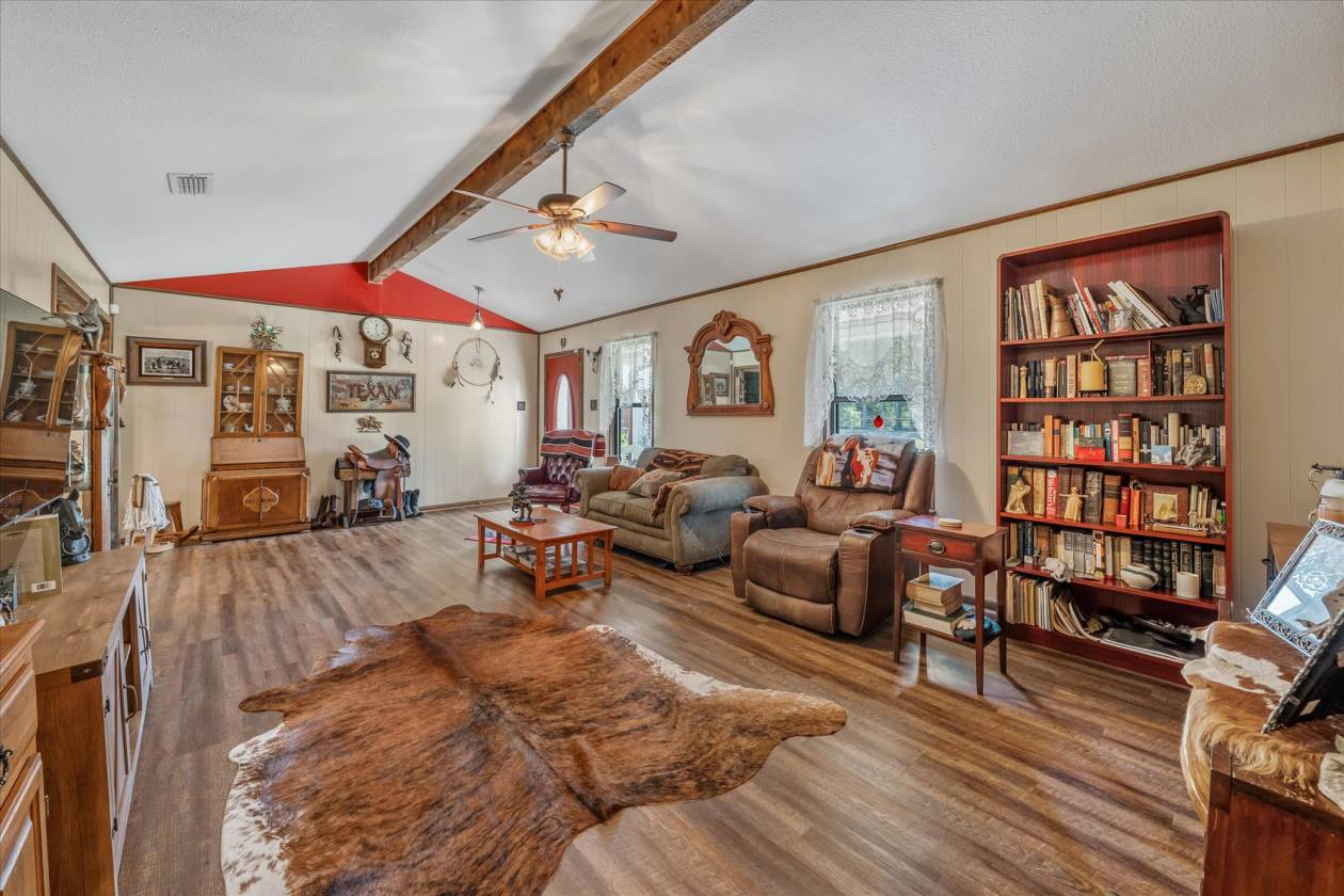 It's a TWO-FER! Perfect for the horse lover or homesteader, but also for live-in multi-generational families. Keep everybody close or make some rental income on this fabulous property with TWO residences connected via a shared garage perfectly situated on 22+ acres that is fenced and cross-fenced for your animals and projects. Fullsized stable barn and tack room with electric and water, plus a workshop area. Multiple pastures have their own water lines, plus two custom built loafing sheds. A handy centrally located water manifold for shutoffs and access. Main house is a 3 bed, 2 bath, with two living areas plus handicap ramp access and grab bars in bath. Secondary residence is a 2017 addition featuring 2 beds, 2 baths on slab. Both with great kitchens, baths, and porches. Natural creek runs through the back of the property. Approximately half is pasture land and fenced, the other half is wooded and ready for your creativity! Seller says the wooded land near the creek also makes for great hunting. Come check it out!