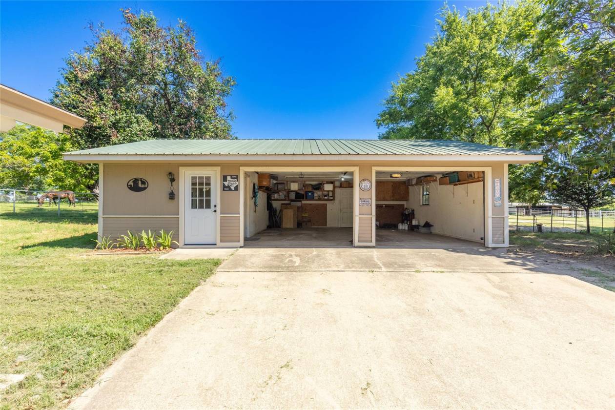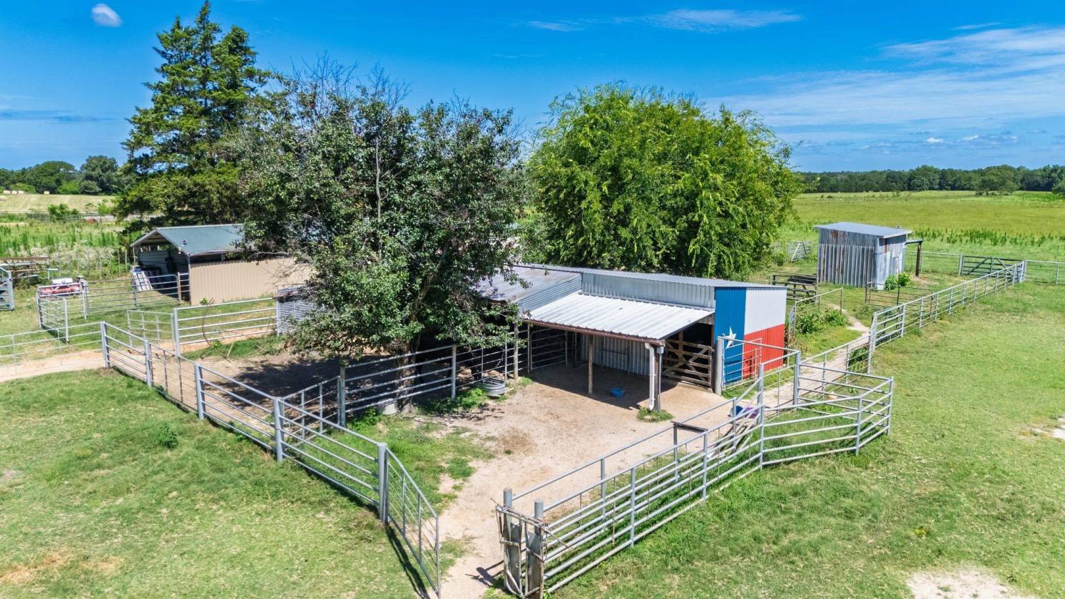 Nestled on nearly 14 peaceful acres, this beautifully maintained 2-bedroom, 1-bathroom home offers the perfect blend of comfort, functionality, and wide-open space. With a layout designed for both everyday living and weekend retreats, the home reflects true pride of ownership—thoughtfully updated, well cared for, and move-in ready. From the bright interior and energy efficiency to the charming finishes and solid structure, every detail speaks to quality and care. Step outside into your own ranch-ready setup: fenced and cross-fenced with pipe, chain-link, and barbed wire, the property includes multiple pipe pens, sheds, a Priefert head gate, chute, and numerous cut gates for smooth cattle handling. An improved pasture supports hay production, adding even more versatility and value. There’s a feed room with concrete flooring and electricity, storage room, hay barn with metal roofing, city water at the barn, and an auto horse waterer that requires no electric hookup. For hobbyists or weekend warriors, enjoy the AC-cooled man cave with built-ins, a garage with a 220 outlet and outdoor electric, and a covered patio with ceiling fan, built-in BBQ grill, and multiple water hookups throughout the grounds. The cement driveway, roll-up storage room, vapor light, and abundance of added features make country living comfortable and incredibly functional. This property has been set up for long-term enjoyment, and it shows—whether you’re looking to run cattle, keep horses, harvest hay, or simply unwind beneath big Texas skies, this property delivers space, versatility, and peace of mind.