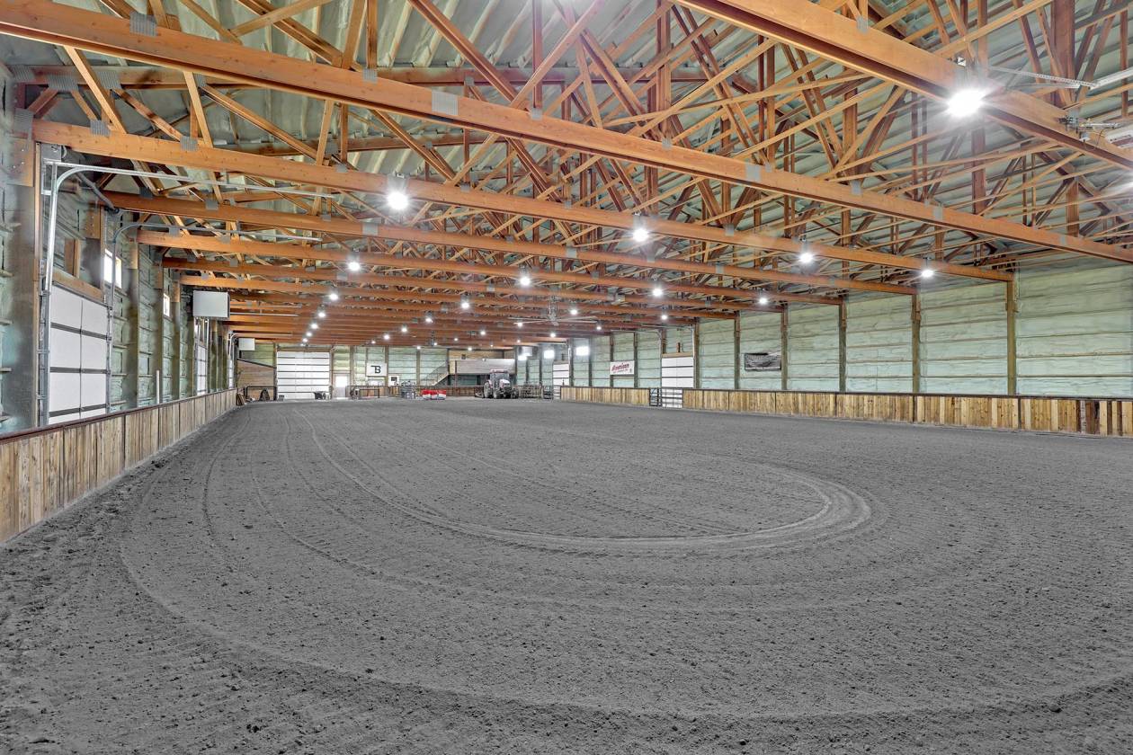 • 15,200± square foot horse arena with a finished foyer (including kitchenette and bathrooms) and indoor viewing platform