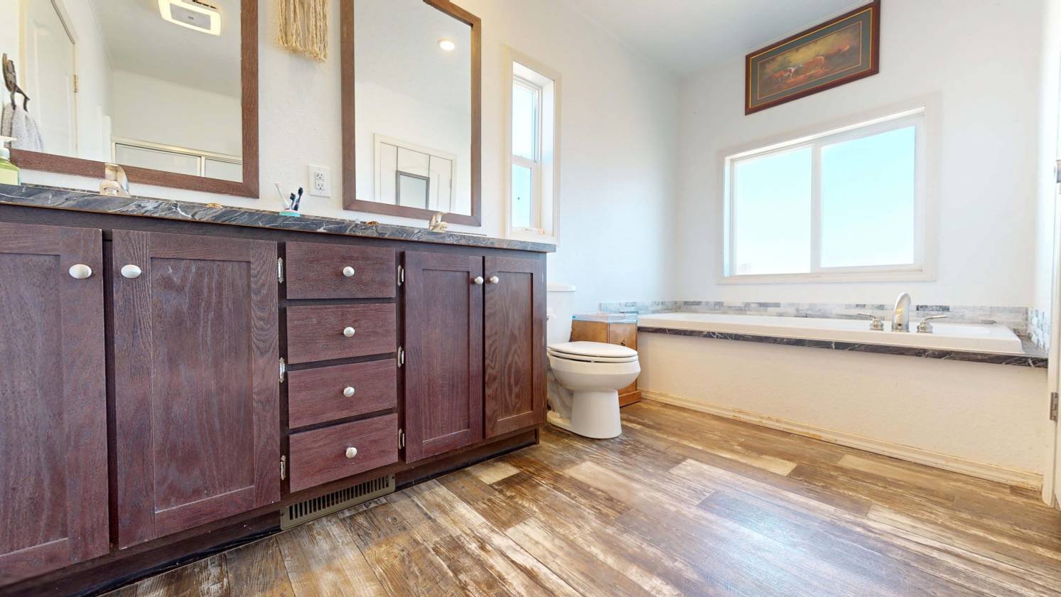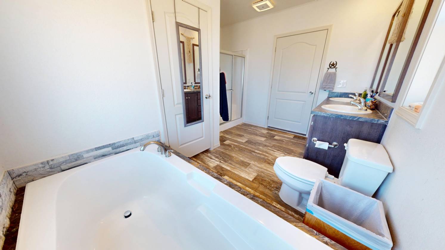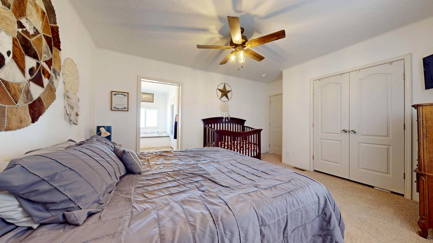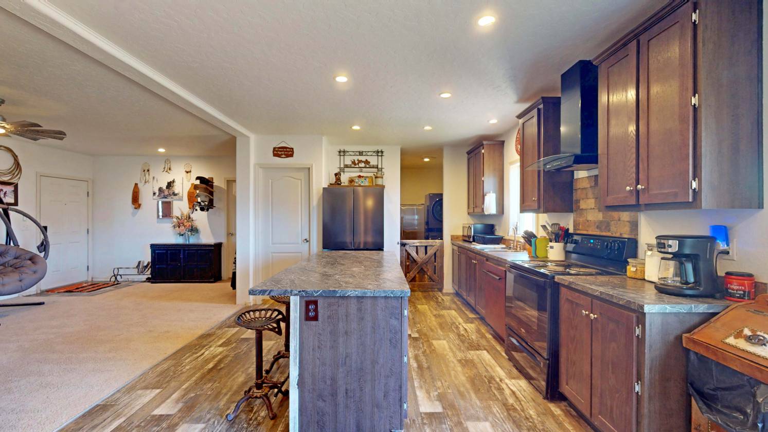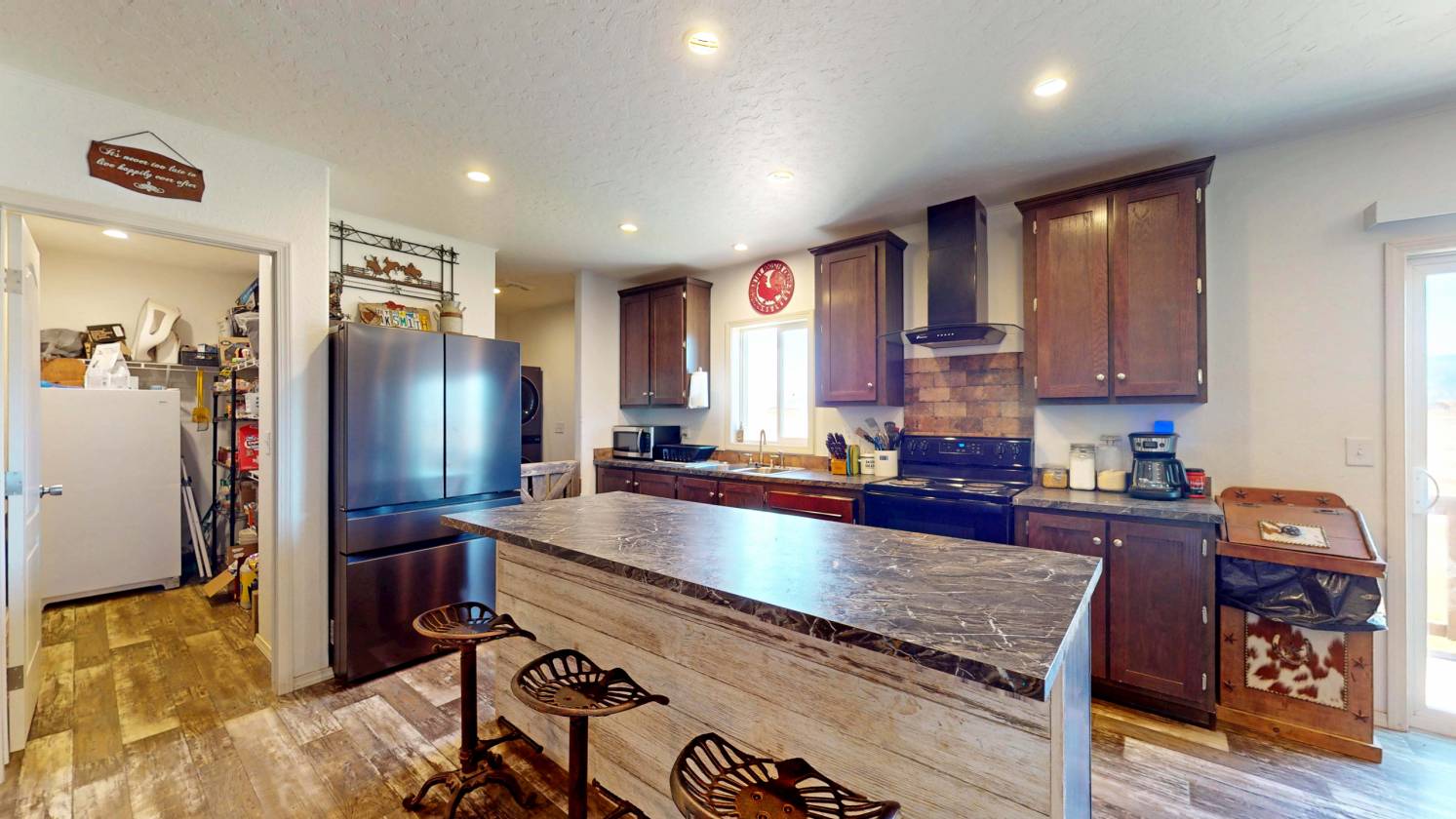 • This roomy manufactured home is a 2022 build and has the upscale touches you're looking for while incorporating a ranch theme. The kitchen has all the modern touches you could ever want, and the view out of the kitchen window is breathtaking. The spacious main bedroom and bath feel luxurious, with beautiful built-in shelves and drawers in the closet.