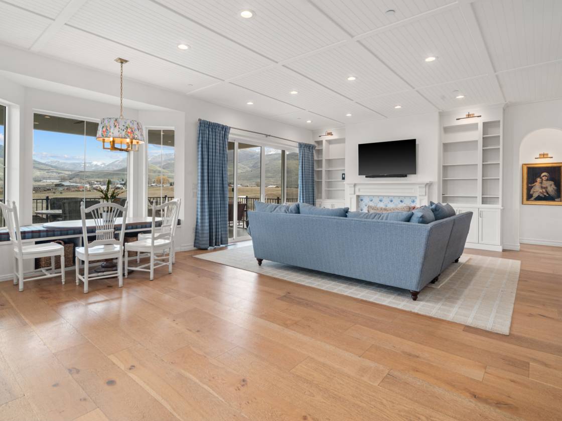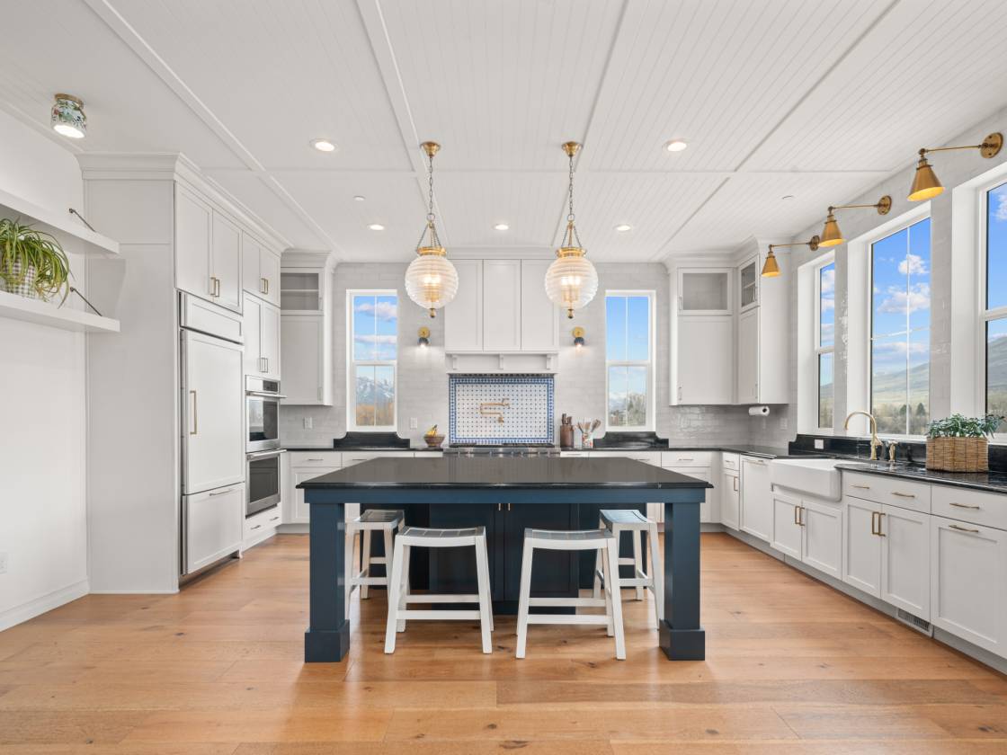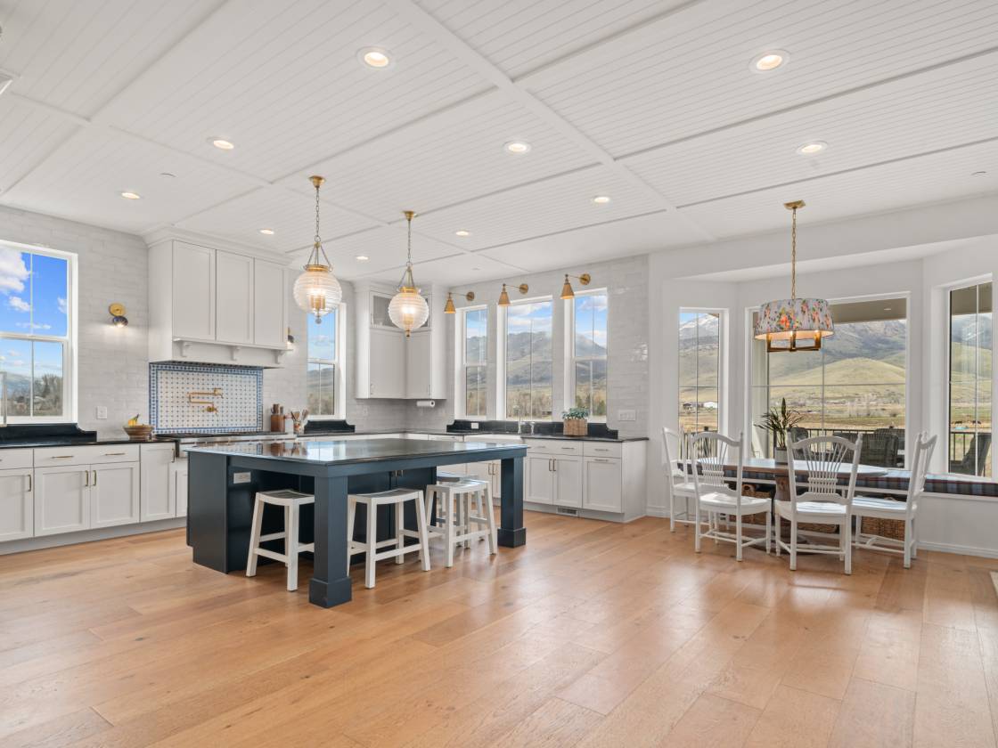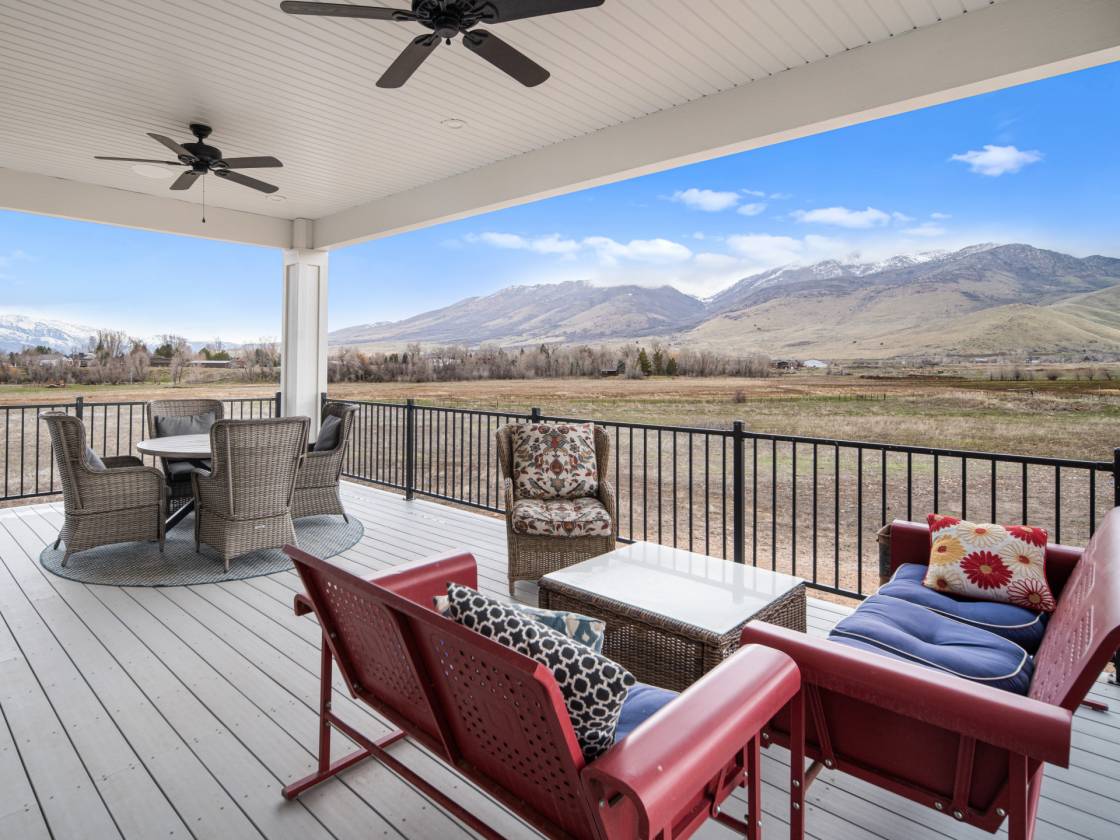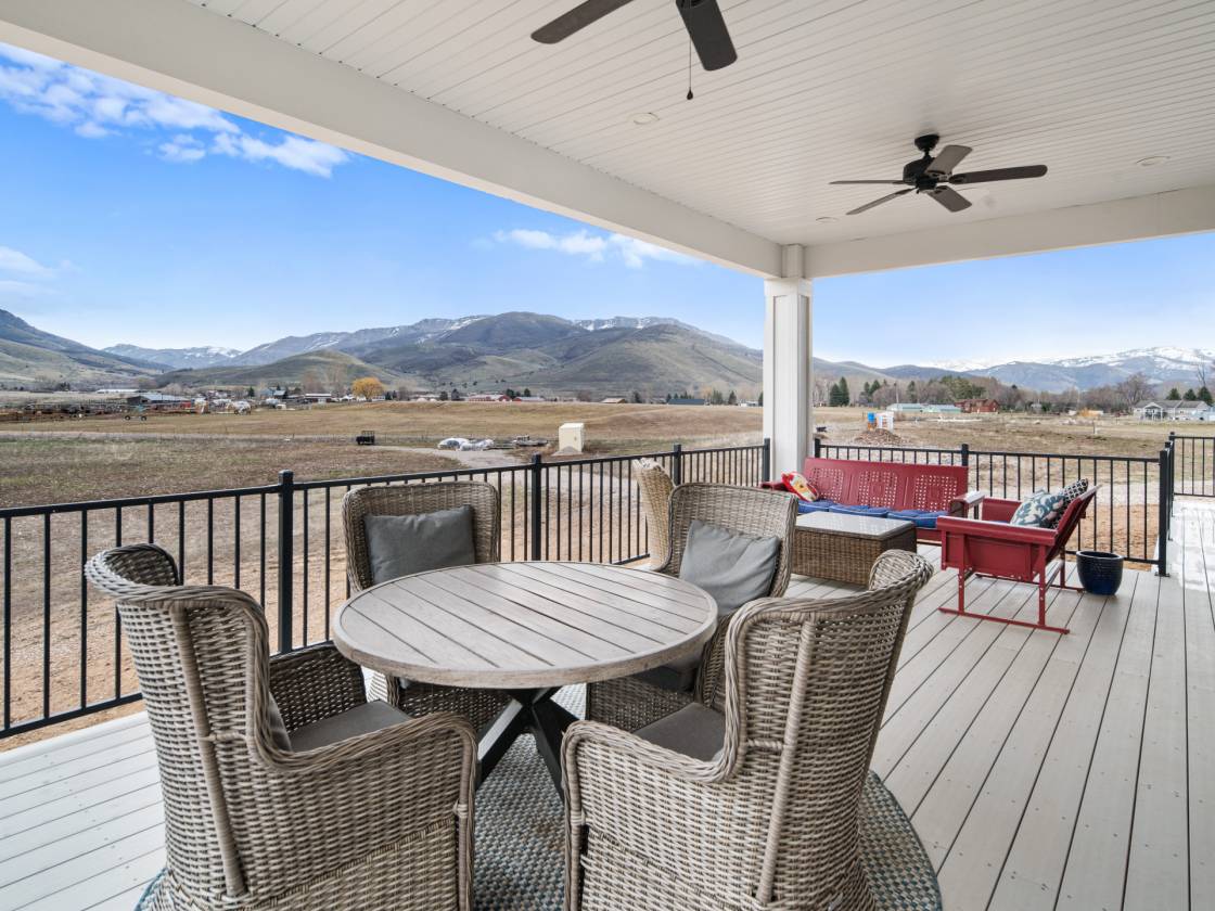 Experience the perfect blend of elegance and comfort in this impeccably crafted home, set against the peaceful beauty of Huntsville, Utah. Positioned on a 17-acre lot within the exclusive Sky Ranch Gated Community, the property showcases sweeping, unobstructed views of the Wasatch Range-offering a tranquil and inspiring setting every day. The heart of the home is a gourmet kitchen designed to impress, featuring a Wolf range with six burners and a griddle, double wall ovens, a stunning handmade Moroccan tile backsplash, and soapstone countertops. The Butler's pantry, ice maker, and dual refrigerator drawers make entertaining effortless, while the expansive island invites gathering and conversation. White oak floors flow throughout the spacious, open-concept living areas, creating warmth and continuity. A light-filled home office offers panoramic views that inspire focus and creativity, while the covered deck provides the perfect space for hosting guests or enjoying a quiet moment. Each bedroom is generously sized, offering flexibility and comfort for both family and guests. The primary suite is a true retreat, featuring elevated design touches and a luxurious, spa-inspired en-suite bathroom. The oversized garage offers abundant storage and organization, complementing the home's thoughtful layout. More than just a residence, this property is an invitation to a lifestyle defined by natural beauty, modern luxury, and unmatched serenity. Buyer to verify all.