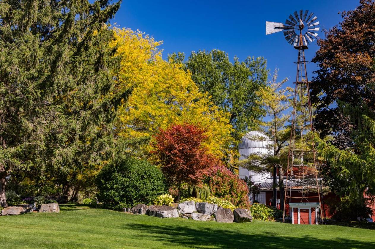 Set on 91± acres in the heart of Charlotte, Vermont, this exceptional lakefront estate offers a rare combination of natural beauty and deep privacy. With long views of Lake Champlain and the Adirondacks to the west, the property spans rolling pasture, mature woodlands, curated gardens, and a private waterfront. A gravel drive leads from the main house, past a spring-fed pond and to the meadows, with a different view of the mountain, lake, and pastoral views from each building.
