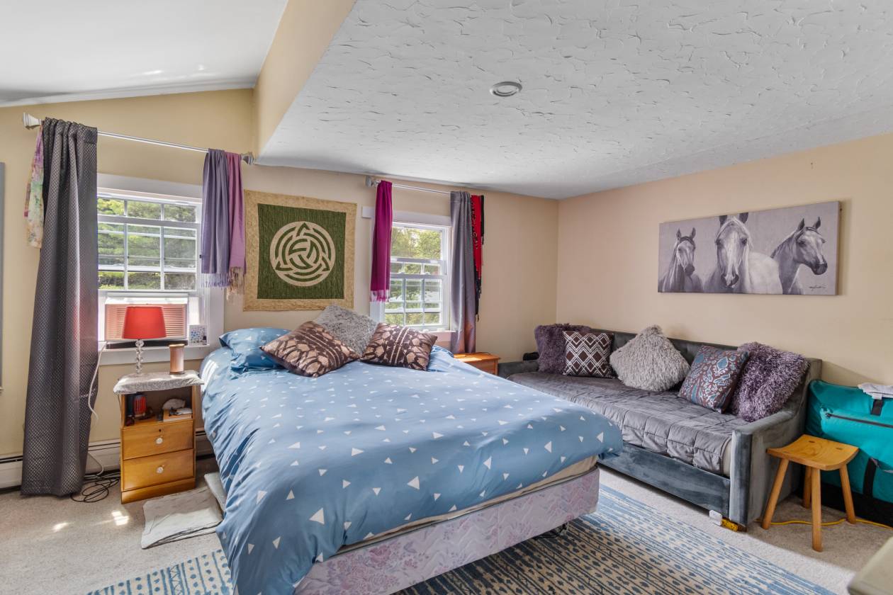 17 acres of mostly pasture with board fencing, this established equestrian facility is turnkey. There are 22 box stalls, plus 4 quarantine stalls and 4 pony stalls. The main, "bank" barn is a historic post and beam with a beautiful tack room, dressing room and trainer's office, plus wash stall, grooming stall. Both barns are fully matted. Upper barn has a smaller heated tack room. There is an indoor arena (70 x 120') with excellent footing and an outdoor arena( 240 x 110') with fine washed sand footing. There is a large field to the north of most of the pastures that has a "run-in" and has been used for school horses and overflow at times. The barns and fields behind the house have surveillance cameras to keep an eye on the horses. The outdoor arena has timed watering system that feeds from the pond nearby. This keeps down summertime "dust".