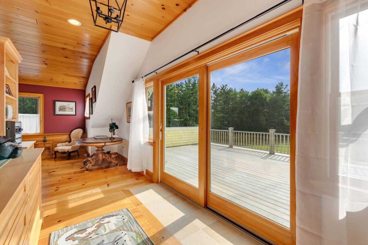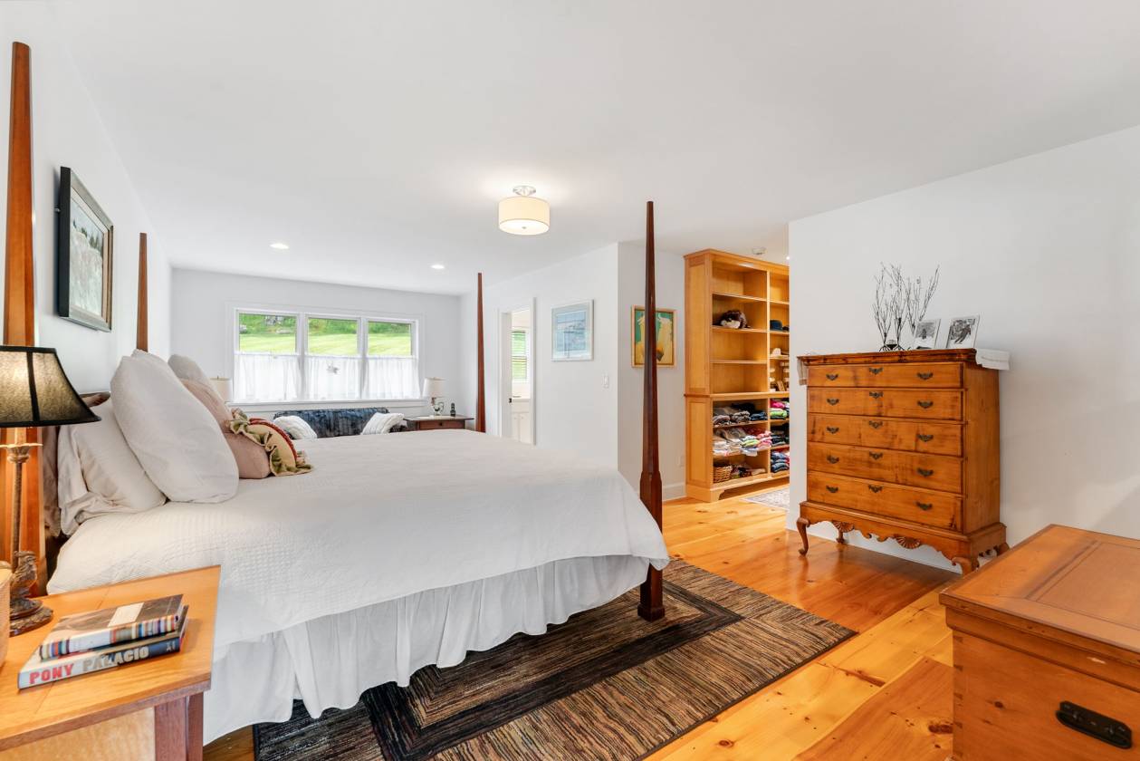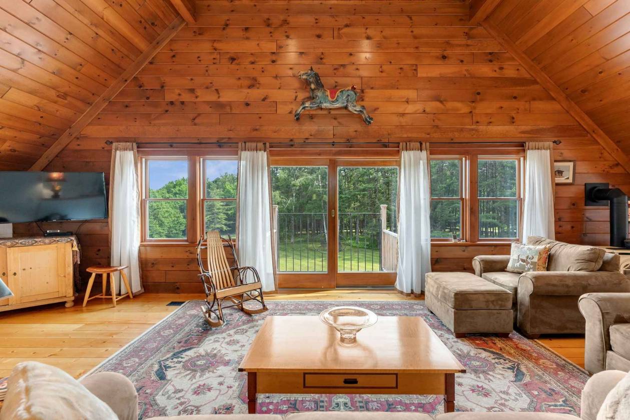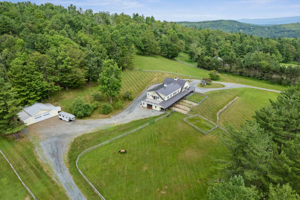 Situated amongst the finest equine estates in the region, Tuacknback Farm is an iconic landmark, best known as the most popular hold along the famed Vermont 100 ride. Located on a scenic country road, accessing the most extensive trail systems in New England, the entire property was impeccably orchestrated for ease with direct walk-in access to the connected stable and hay loft, and a wide circular entry. The grounds are gorgeous with long, verdant lawns, fenced pastures and pens, a maple tree lined entry, ancient stone walls, and copious established perennial beds offering a lovely palette throughout the seasons. The home was originally built in 1988, benefitting from a top-quality expansion and renovation in 2018. The interior spaces are generous, bright and inviting with sweeping wooden cathedral ceilings and gleaming pine floors running throughout the main level with a cupola providing additional light and dramatic interest. The kitchen is well appointed with plenty of cabinet and counter space. A propane stove warms the living and dining area. Open-concept common spaces connect to a balcony and two exterior decks overlooking the pastures and lawns. A spacious and comfortable primary bedroom features custom maple cabinetry and walk in closets. 4 additional bedrooms and 3bathrooms. Walkout lower family room. Heated tack room and direct access to the impressive stables with washroom, seven stalls.