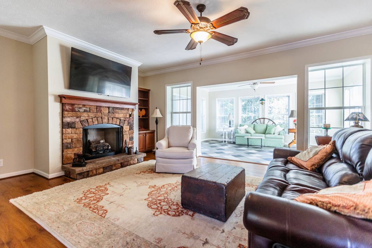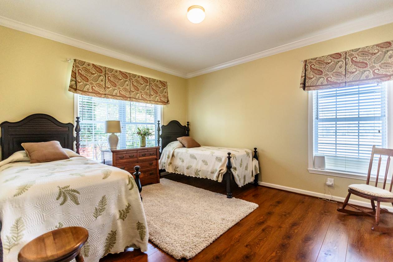 • The main floor offers 3 bedrooms, 2 baths, and a spacious primary ensuite. Luxury Vinyl Plank floors grace the kitchen, with granite counters, a propane range, and a large island. Upstairs, find a 4th bedroom, full bath, family area, and office space, plus a walk-in attic with expansion potential. Features a detached 2-car garage, whole-house generator, and a lush, oak-shaded yard with a circular drive.