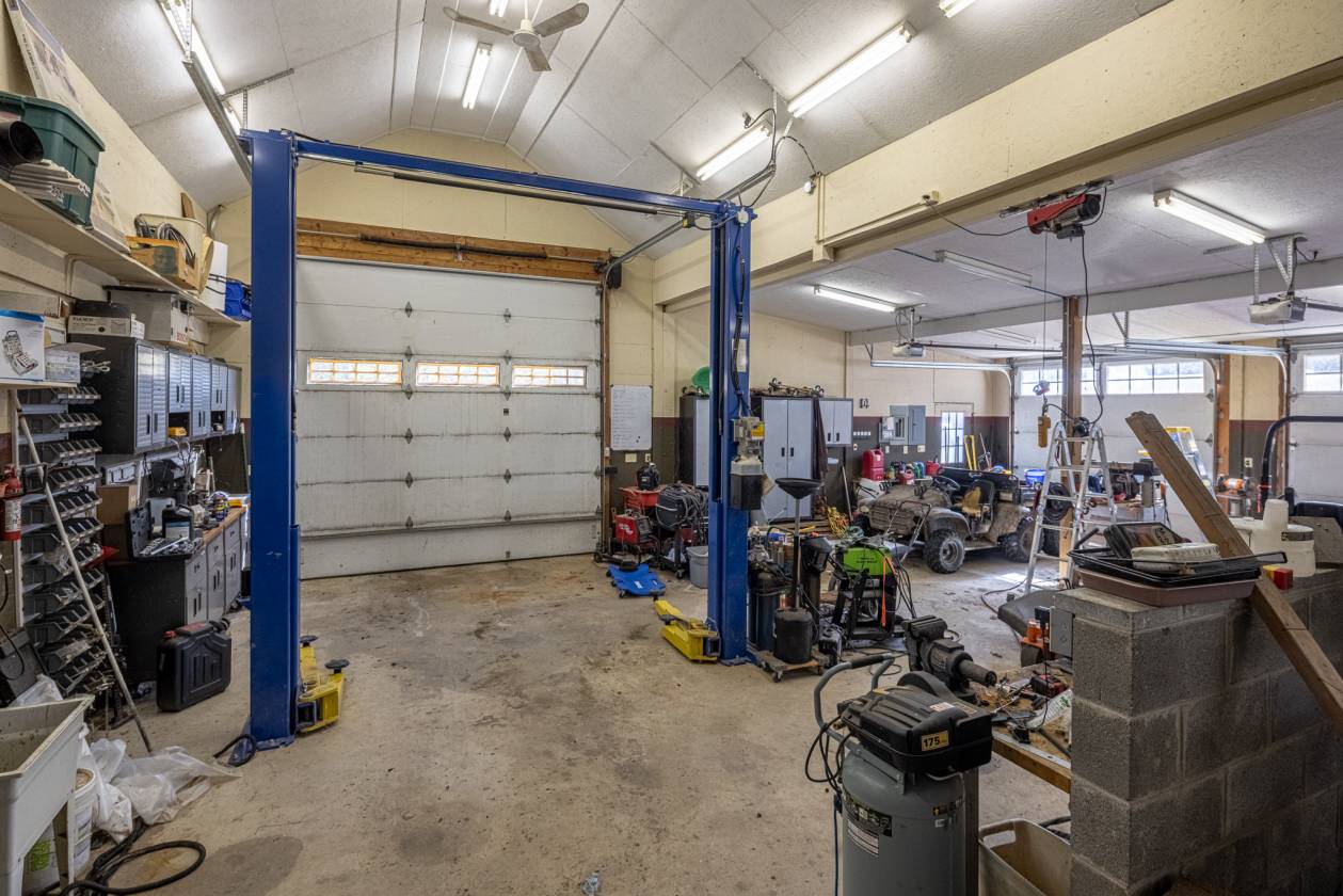 - 4-Bay garage w/car lift, storage cabinetry