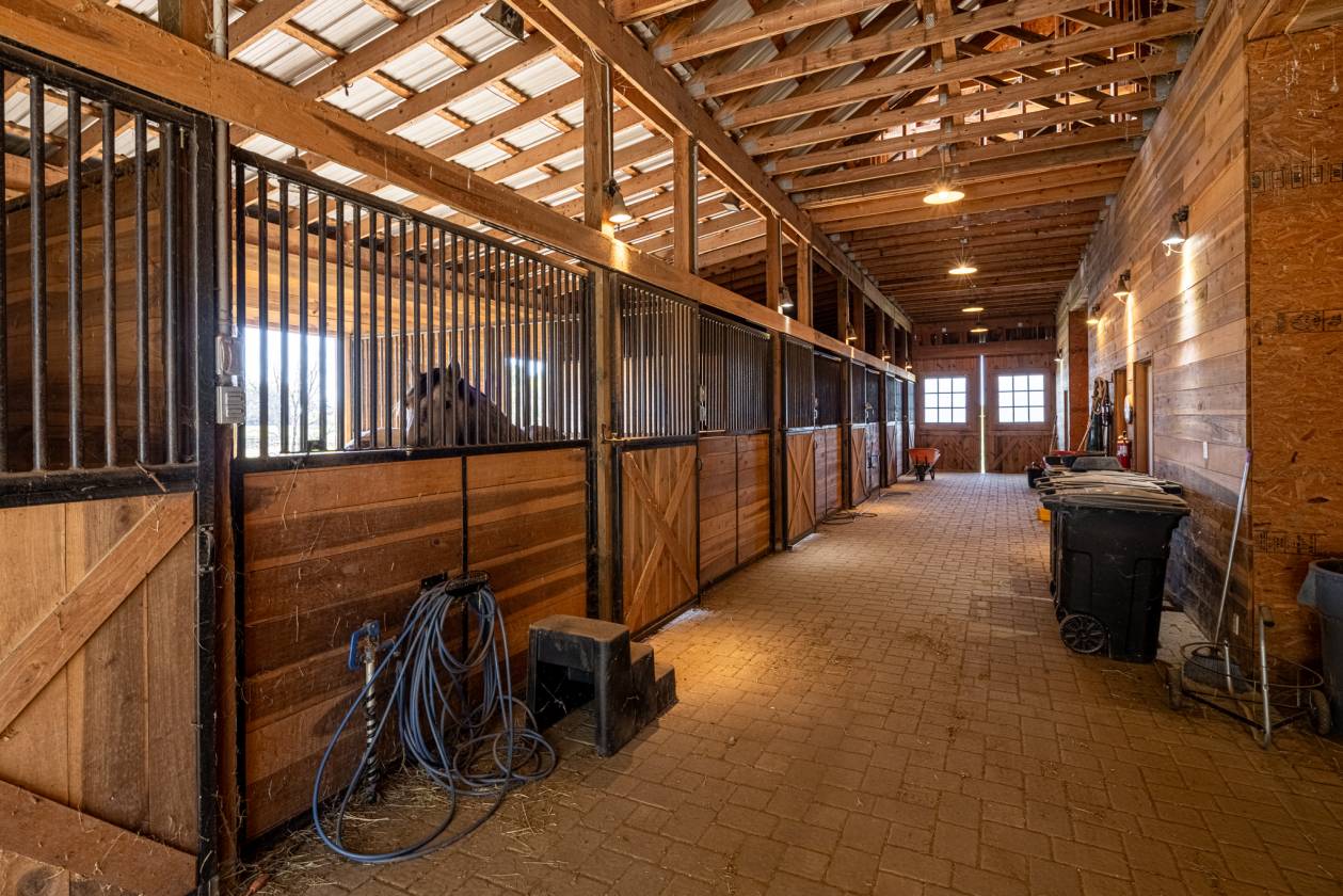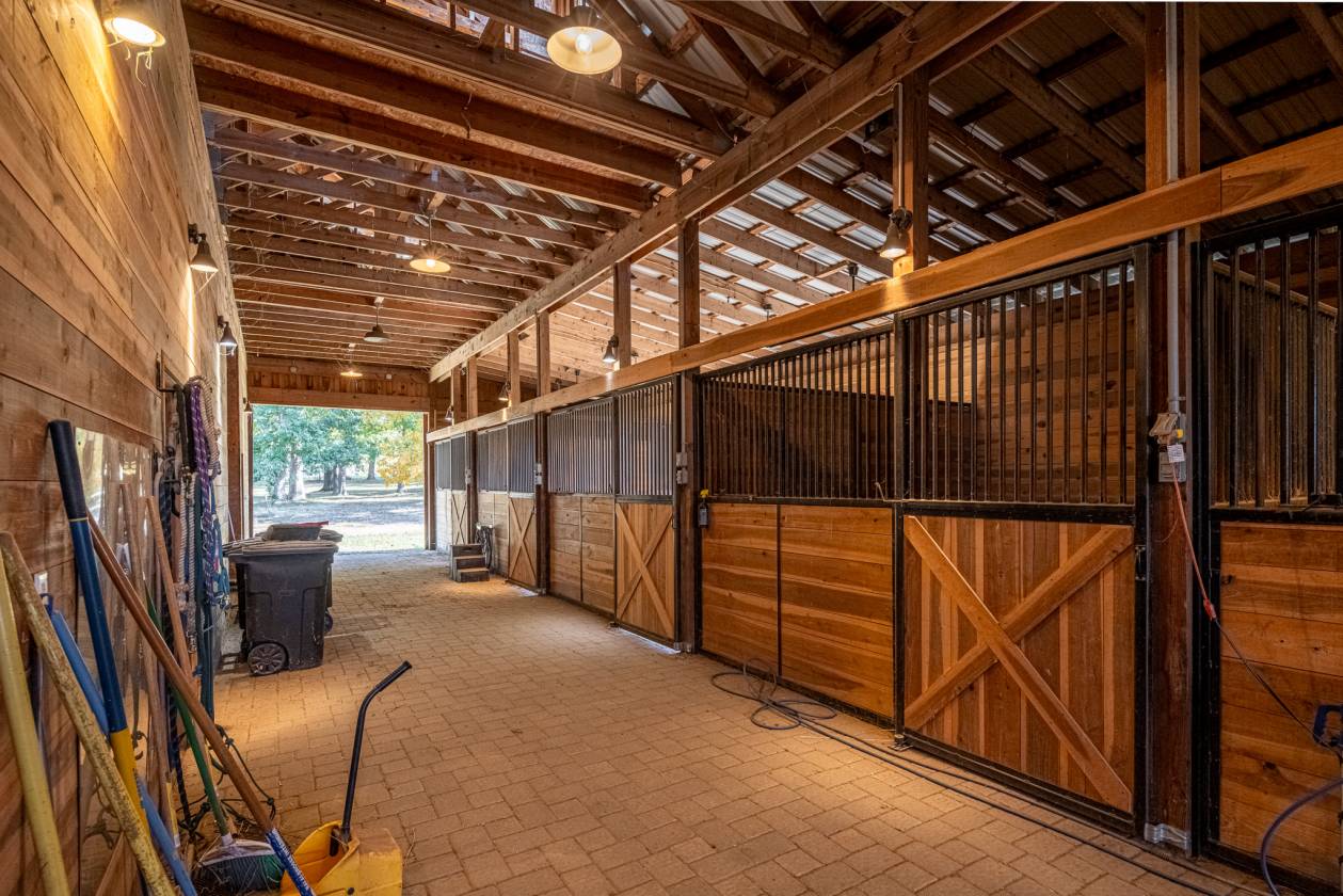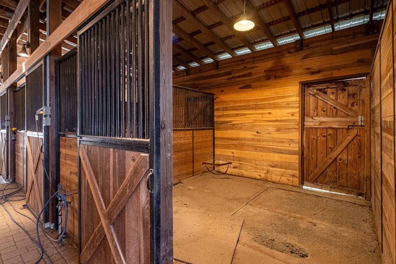 - Kitchen, office, full bath, and a dedicated feed & tack room, plus hay loft