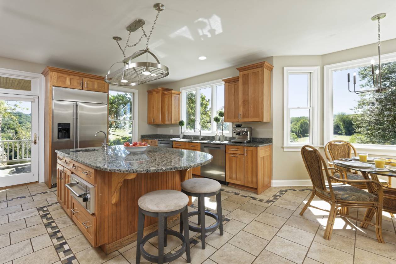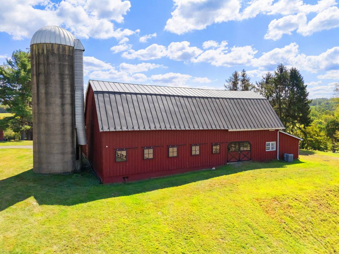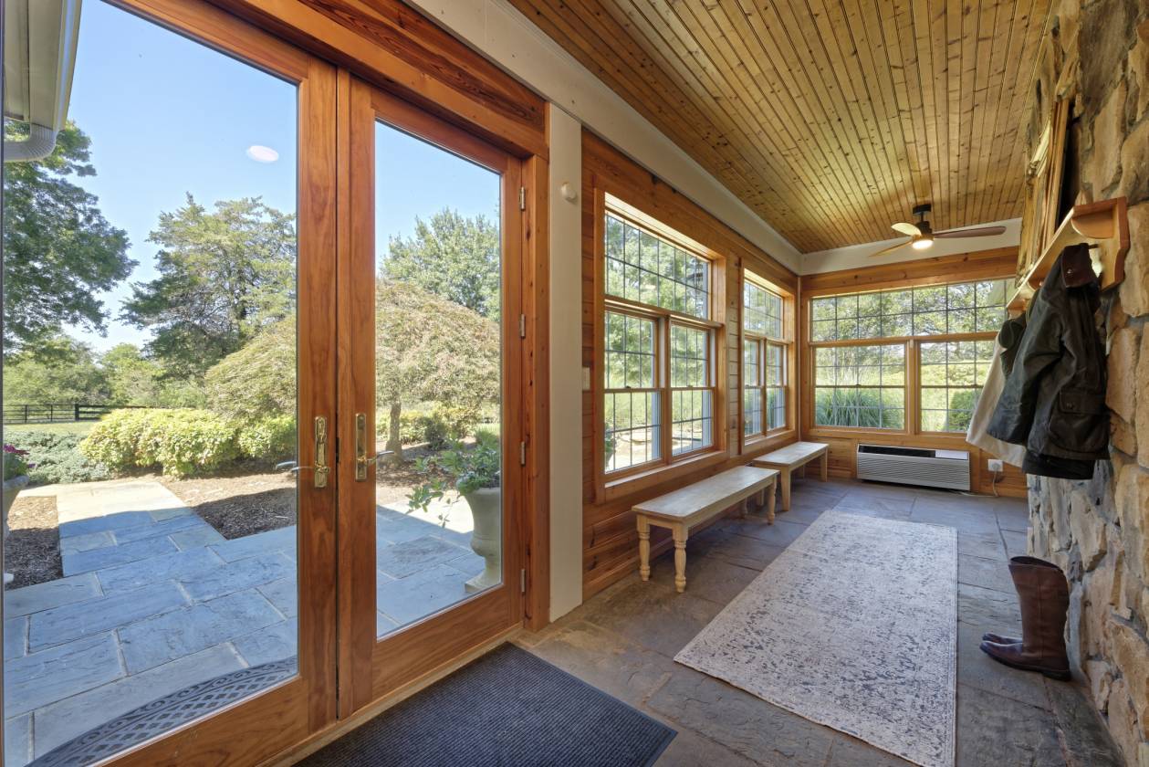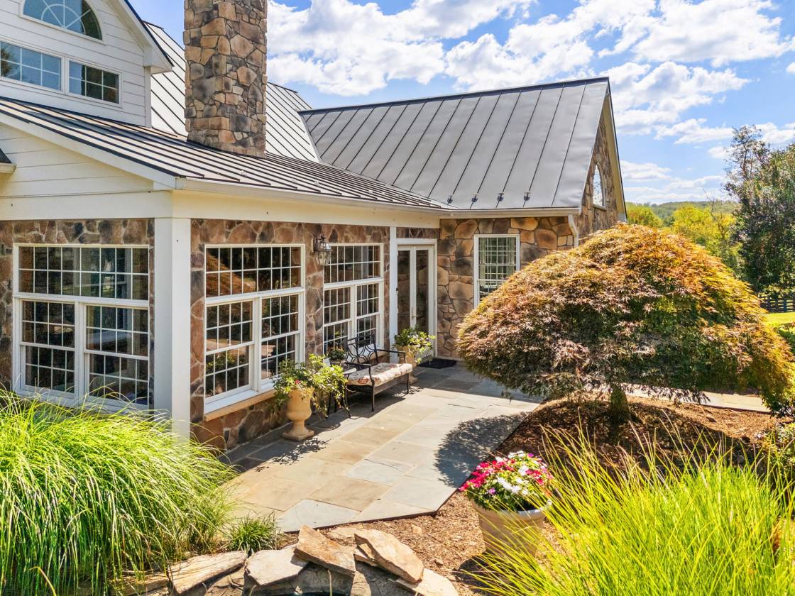 - Anchored by a custom 7,700+ square foot stone residence, Chartwell blends refined living with thoughtful equestrian design. The farm provides flexibility for multigenerational living or income potential with a charming one-bedroom guest cottage and a spacious barn apartment, in addition to the main house. Set high on a knoll, the home takes in sweeping views of rolling hills and a stocked pond. Its three finished levels offer a graceful balance of formal entertaining spaces and relaxed gathering rooms. The main level includes the primary suite, a formal living room with a stone fireplace, dining room with built-ins, a gourmet kitchen with breakfast nook, a cathedral-ceiling family room, sunroom, and a home office. Upstairs, two-bedroom suites with large sitting rooms offer adaptable living space, while the lower level provides an expansive recreation area with stone accents, a second kitchen, two full baths, and multiple flexible rooms for bedrooms, exercise, or hobbies. Outdoor living is equally inviting with a covered flagstone porch and spacious deck with a hot tub that take in the scenic views.