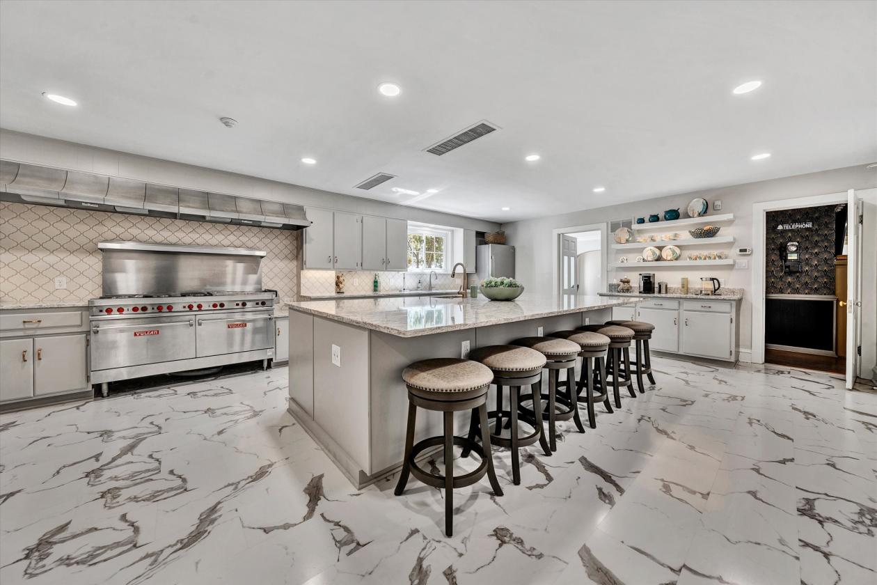 - The home was designed to accommodate large gatherings while still feeling intimate, making it ideal for multigenerational use or private hosting.