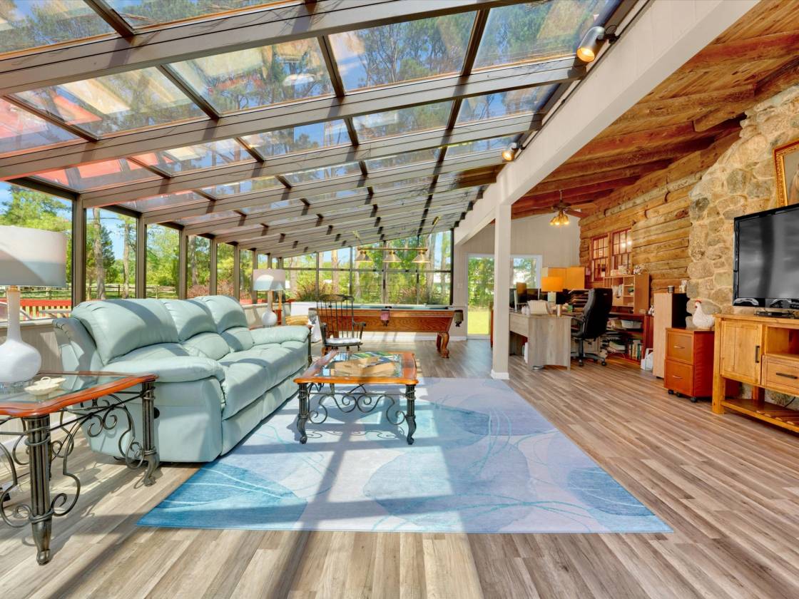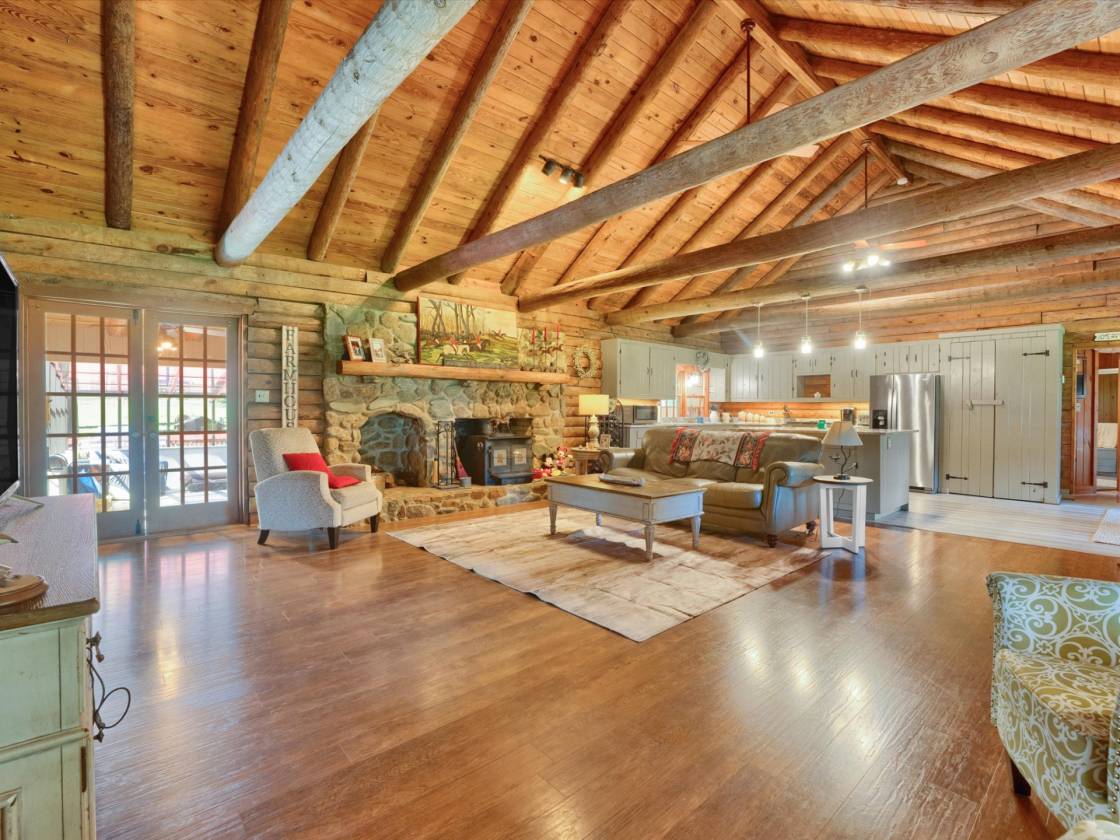 Rustic Charm, Equestrian Excellence & Endless Possibilities -Equestrian Estate in Rockville – A Rare Offering! Welcome to a truly exceptional opportunity for horse lovers & equestrian professionals alike. Nestled on 23.77± acres across two beautifully maintained parcels, this is your chance to own the former Rockville Equestrian Center—a premier horse property rarely available in this sought-after area. This turn-key estate offers an unparalleled combination of function, comfort, and charm, featuring: Equestrian Facilities: 19 stalls total, including a renovated center-aisle barn with 8 oversized 12x12 stalls, a wash rack, tack room, feed room, half bath, hay loft, and a wide 14’ center aisle Two outdoor riding arenas: a dedicated jumping arena and a regulation-size dressage arena Round pen and multiple fenced pastures with run-in sheds, ideal for turnout and rotational grazing Two additional barns with 11 more stalls, hay lofts, & tack rooms Detached 3-car garage with an attached office—perfect for business operations or future guest quarters The Log Home – Rustic Elegance Meets Modern Comfort: Step into a warm and welcoming retreat with soaring cathedral ceilings, exposed log beams, & a stunning floor-to-ceiling stone hearth with a wood stove in the great room. The open-concept kitchen & dining area features granite countertops, a center island, stainless steel appliances, and a gas stove—perfect for both everyday living and entertaining. Main-level primary suite with vaulted ceilings, walk-in closet, and a spa-like bath with jetted tub and walk-in shower Two spacious guest bedrooms share a full bath on the opposite wing Upstairs second primary suite with dual vanities, tub/shower combo, and ample closet space Sun-drenched Florida room—ideal as a second living area, home office, or rec room Outdoor Living: Enjoy the peace and privacy of your surroundings from the expansive back deck, ideal for hosting or simply soaking in the panoramic views of your equestrian haven.