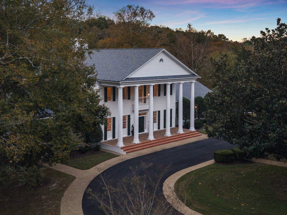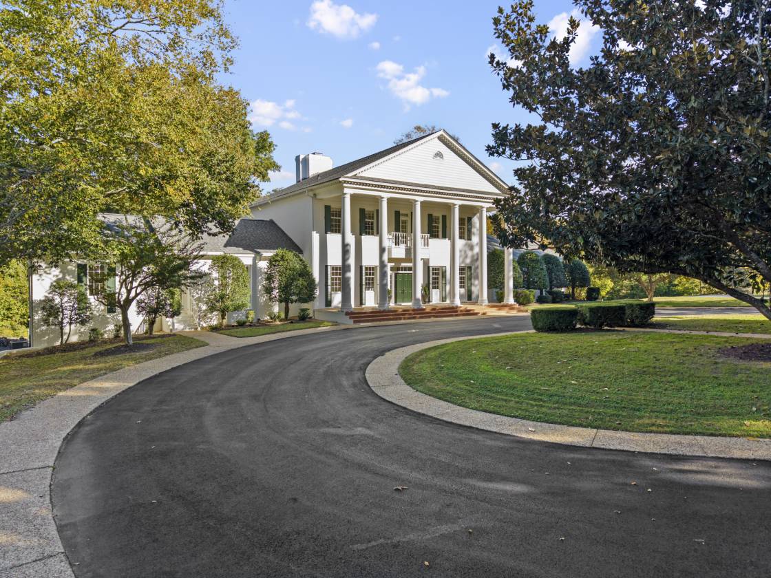 - Grand entrance with tree-lined drive and circular driveway