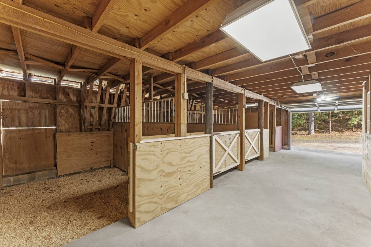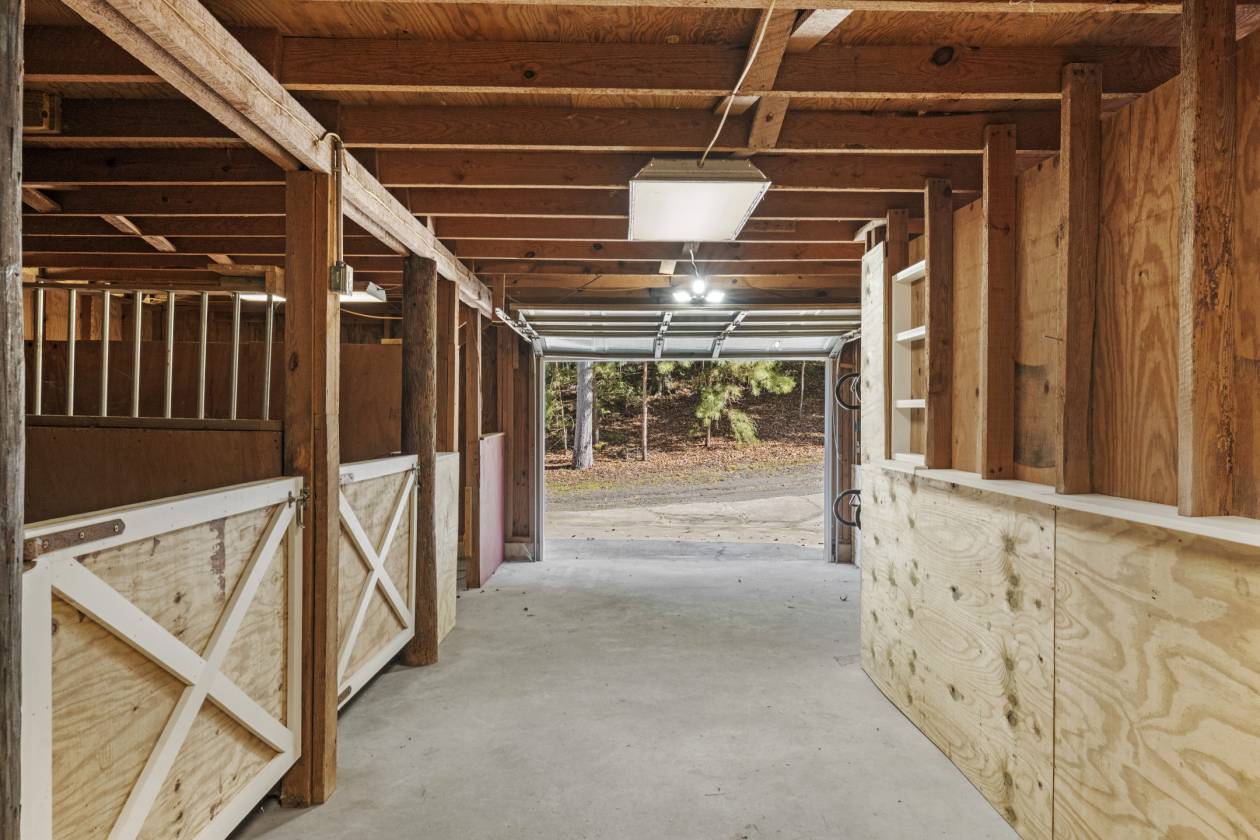 - 3-stall horse barn with hay storage and additional garage bay