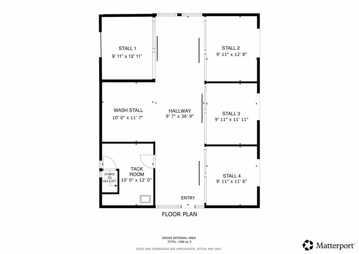 - Interior Stairs to fantastic, floored hay loft that holds 400 plus square bales
