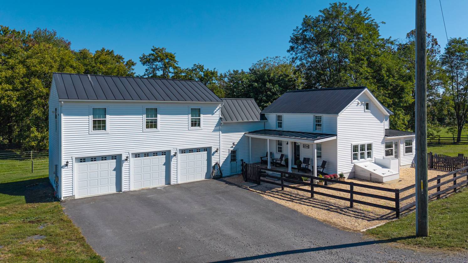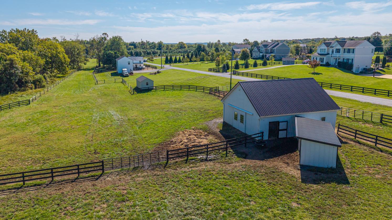 Turn-key, rarely available equestrian property with restored and expanded farmhouse, 4-stall barn, and riding arena on 16 acres with Fios high-speed internet in sought-after Leesburg, Loudoun County. This unique property features a meticulously restored interior that preserves historic character while offering modern systems and a 3-car garage. With quick access to downtown historic Leesburg, Lovettsville, the MARC Train, and the Dulles Greenway, it delivers a complete equestrian lifestyle combined with the convenience of connectivity for work or study from home. The equestrian amenities are thoughtfully designed and highly functional. The Amish-built 4-stall barn features four 10 x 12 stalls with a center aisle that allows excellent ventilation, keeping the barn cool in summer, while the sturdy construction maintains warmth in winter. The barn includes a wash and grooming stall, a heated tack room, and interior stairs to the hayloft that holds 400 square hay bales and room for extra storage. An 80 x 120 sand and bluestone riding ring is just steps from the barn, ideal for daily training. The property has four fenced paddocks for turnout. An expansive rear field allows for galloping and cross-country schooling without leaving the property or future additional turn out. Additional structures include a large run-in shed and a tractor shed. There is excellent room for horse trailer parking and easy access for your farrier and vet. A classic farmhouse front porch extends across the front of the home, offering a welcoming and authentic farmhouse entry. Inside, the original farmhouse features a living room with exposed beams overhead and heart pine floors showcase the surprisingly scaled dining room that comfortably seats 12. The gourmet kitchen is designed for the serious cook with a six-burner dual-fuel range, a large quartz island with seating for five, a farmhouse sink, round mosaic backsplash, and generous cabinetry. A nearby cozy sunroom is the perfect spot for daily meals. Beyond the kitchen, an expansive fenced pea-gravel rear entertaining area provides an ideal setting for outdoor dining or gatherings while overlooking the horses in the pastures. Upstairs in the original farmhouse, the primary suite offers two walk-in closets and a charming bath with clawfoot tub and separate shower, creating a private and elegant retreat. The second ensuite bedroom, currently used as a home office, adds flexibility for guests or work-from-home needs. The expanded addition above the 3-car garage seamlessly complements the farmhouse, offering distinct and private living spaces including two additional bedrooms, a full bath, a family room, and a den. The layout provides a balance of connection and privacy, ideal for family members or guests. An ultra-expansive mudroom sits between the two wings, with a conveniently located half bath nearby, keeping daily life organized and practical. Windows throughout both areas fill the home with natural light and offer serene views of the pastures When you are not riding the walking trail along the creek offers a great spot to exercise the dog. Wildlife is abundant, including bald eagles, red-tailed hawks, deer, fox, and Blue Herons. Located off paved Loyalty Road with nearby amenities including vineyards, breweries, antique shops, golf, and quick access to the Potomac River. Premier equestrian venues such as Morven Park, Loch Moy, Upperville Horse Show Grounds, and the Marion duPont Scott Equine Medical Center are just minutes away, enhancing the equestrian lifestyle this property provides. This is a rare opportunity to own a turnkey equestrian property in a prime Loudoun County location, with meticulously preserved historic charm, modern living systems, unique layout, and exceptional horse facilities. Very small and mild country HOA -17 homes.