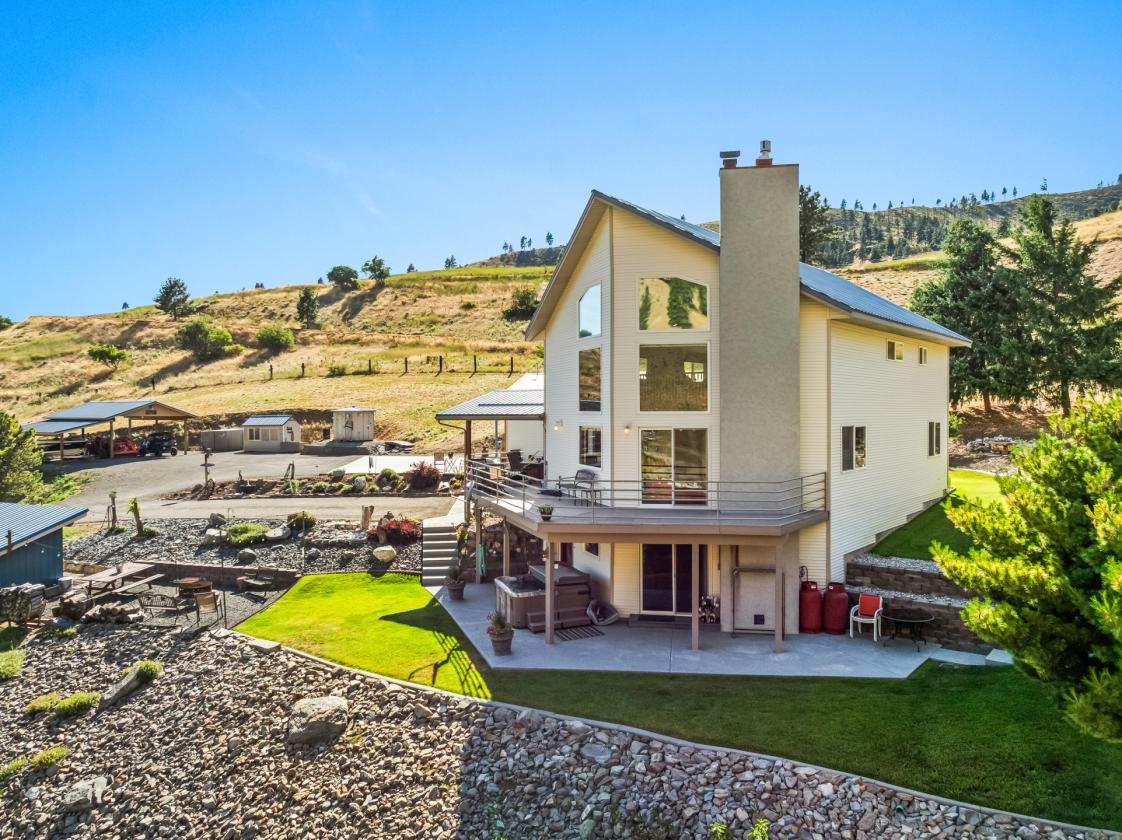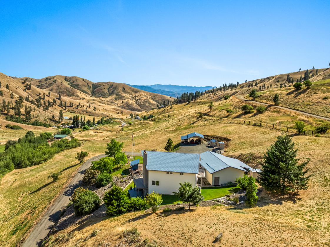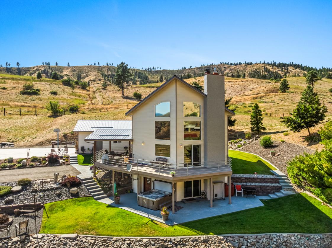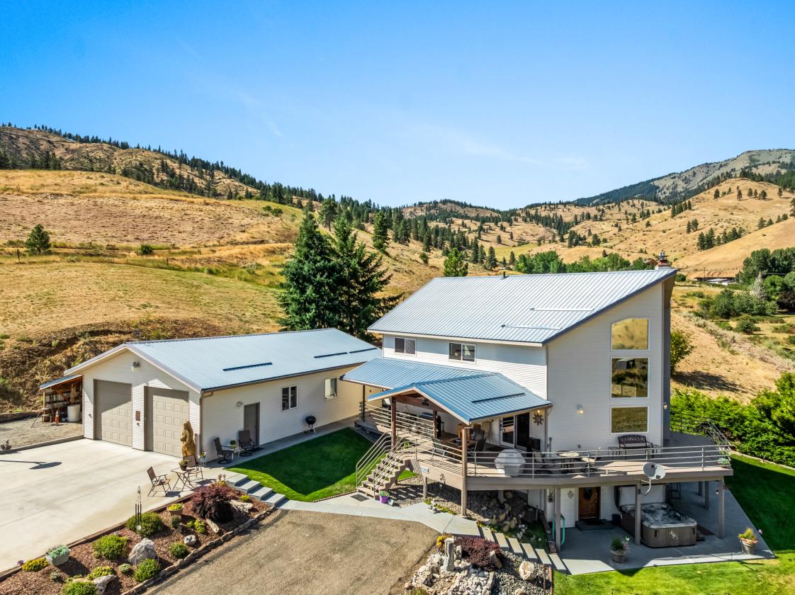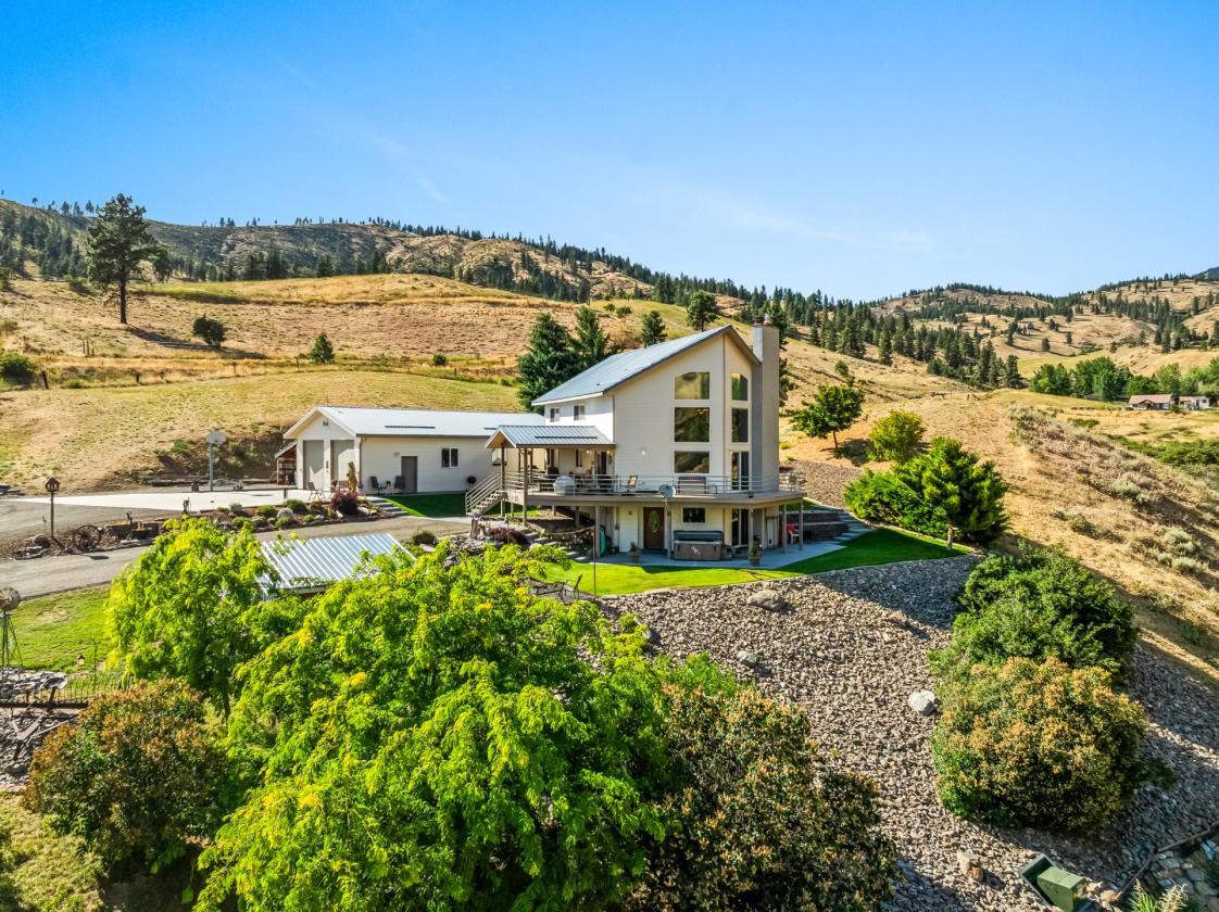 Discover a blend of rural tranquility and modern convenience in this spacious 3,090-square-foot home. Thoughtfully designed, it offers four bedrooms, three bathrooms, a durable metal roof, and a new 5-ton HVAC system for year-round comfort. The daylight basement has a billiards room, full wet bar, and a TV area to enjoy those all important games. Rec room opens up to patio with hot tum to relax and take in the beautiful views that go on for miles! The outdoor spaces impressive. A standout feature is the 1,334-square-foot garage, equipped with 200-amp service and room for 4+ vehicles, projects, or storage needs. The landscaped grounds include a waterfall, multiple areas for relaxation or entertaining, a hot tub, and a fire pit—all set against wide-open territorial views. The property also includes pasture space with a natural spring, a high-producing well, and a large septic system.Access is convenient via well-maintained county roads. Nearby destinations such as Leavenworth (approximately 20 minutes) and Lake Chelan (approximately 60 minutes) offer a variety of recreational options. Outdoor activities including hiking, horseback riding, ATV riding, and snowmobiling can be enjoyed directly from the property. School bus pickup is located at the end of the driveway, and package delivery services are available. This property offers space, privacy, and a setting that supports a wide range of uses. Must see!